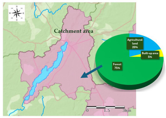 The watershed of SKRL (an area of 25.21 km2) is situated in the lower Vistula River basin (Figure 2). On the north-eastern shore, stream inflows into the lake. The stream drains the marshy area and wet meadows. From the southwestern end of the lake outflows the Kłonecznica River, which flows through the Małe and Kielskie lakes and carries its waters to the Zbrzyca River. The Zbrzyca is a left tributary of the Brda, the largest left-bank tributary of the Vistula in its lower course. The catchment area of the SKRL is covered with mixed forest in 75%, agricultural land in 20% and buildings in 5% (Figure 2).