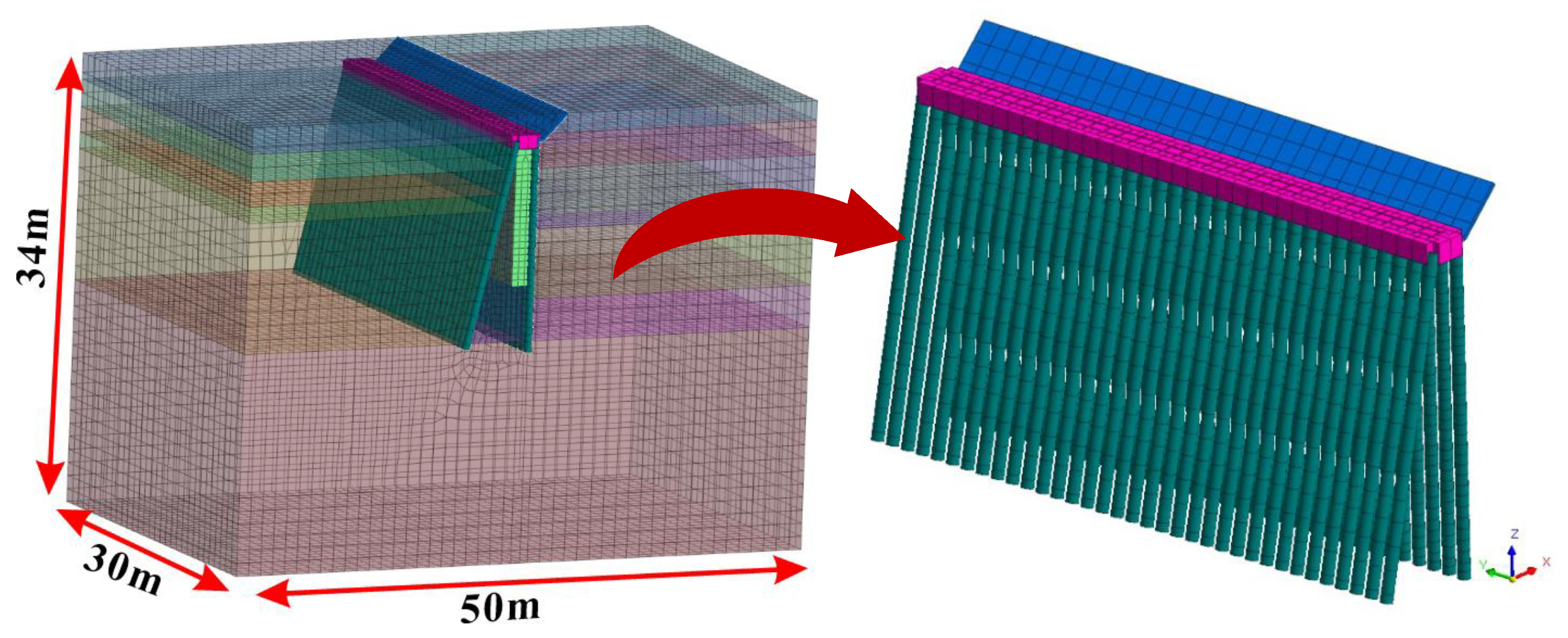 - The research presented in this paper on the parameters of soil reinforcement between piles has been initially completed. However, continuous monitoring of similar projects is necessary to assess potential failure risks and to verify the analysis results discussed herein.