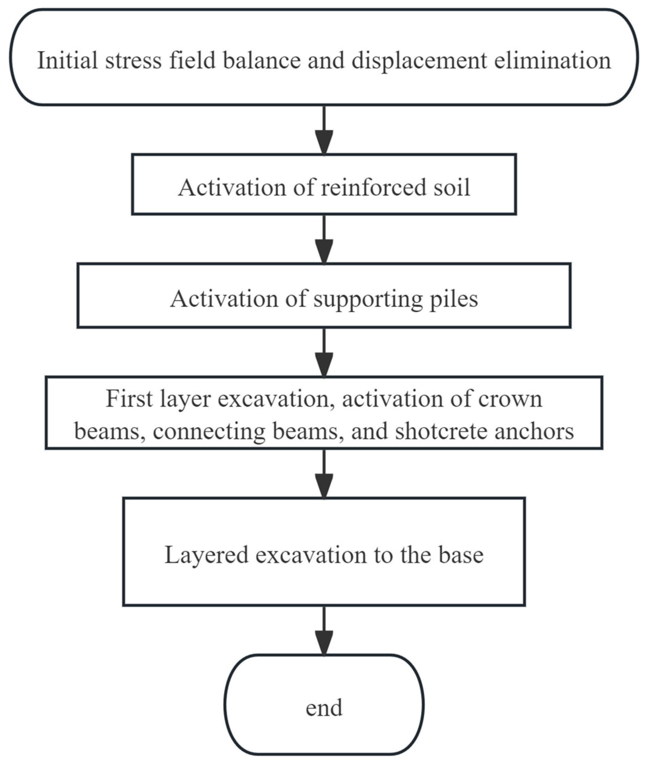 - Huang, J.; Liu, J.; Guo, K.; Wu, C.; Yang, S.; Luo, M.; Lu, Y. Numerical Simulation Study on the Impact of Deep Foundation Pit Excavation on Adjacent Rail Transit Structures—A Case Study. Buildings 2024, 14, 1853. [Google Scholar] [CrossRef]