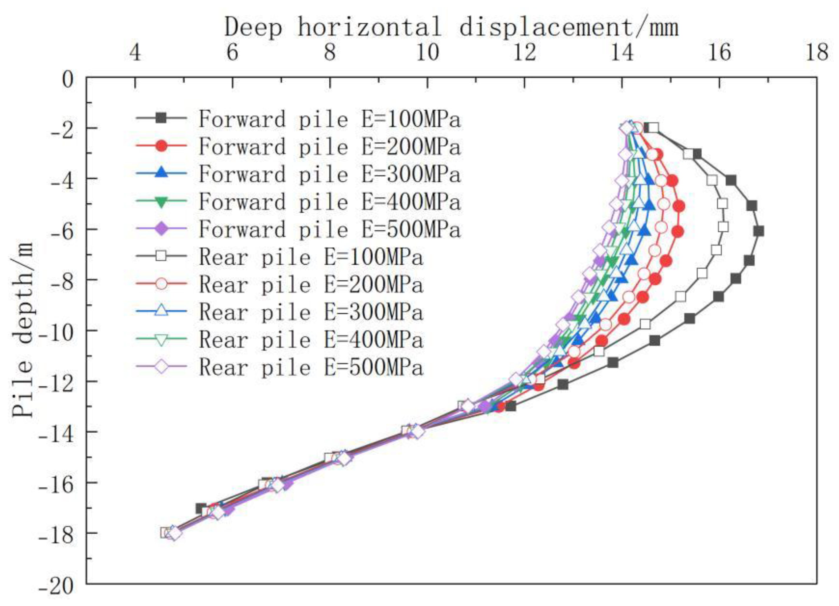 5.4.1. Influence of Elastic Modulus on Pile Displacement