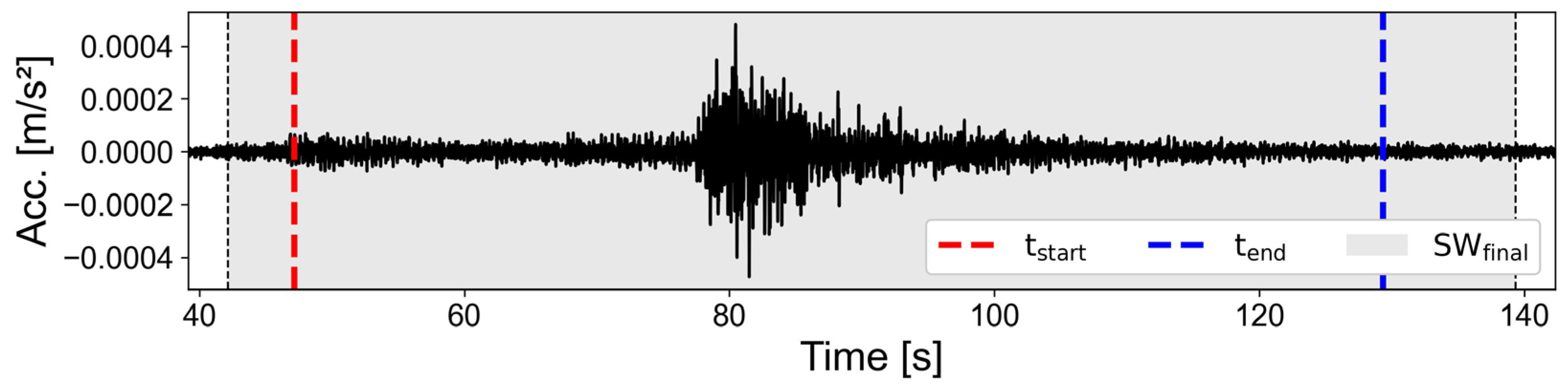 - Signal Window Selection: A method based on the time gradient of NAI was proposed to define the SW. Adding a padding of 5 s before the signal onset and 10 s after the end was found to be appropriate to compensate the starting and ending times of the event.
