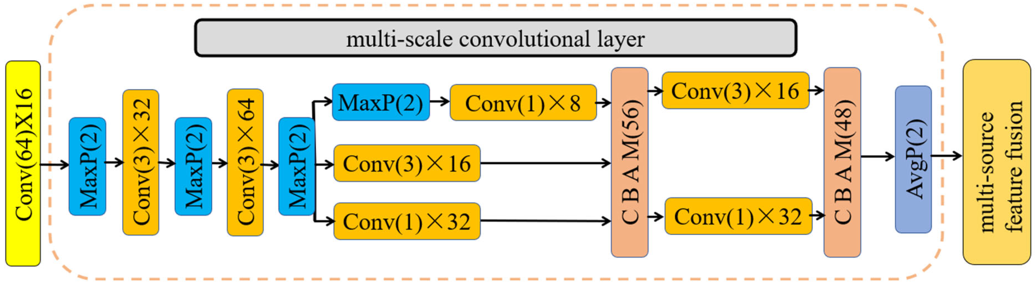 SOCNN-CBAM (Introducing Attention Mechanism): Based on multi-scale convolution, the CBAM attention mechanism is added after two layers of multi-scale structure.