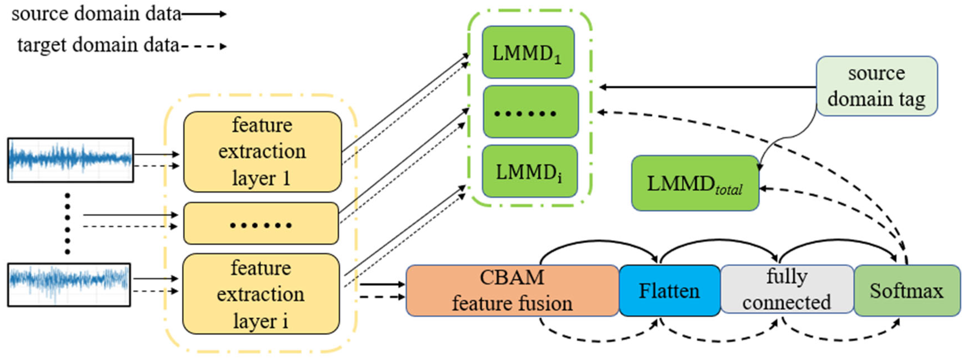 MSFAF-CNN (MS-LMMD): Based on the proposed multi-source data fusion structure, multi-source subdomain adaptation transfer learning is performed using an improved MS-LMMD loss function.