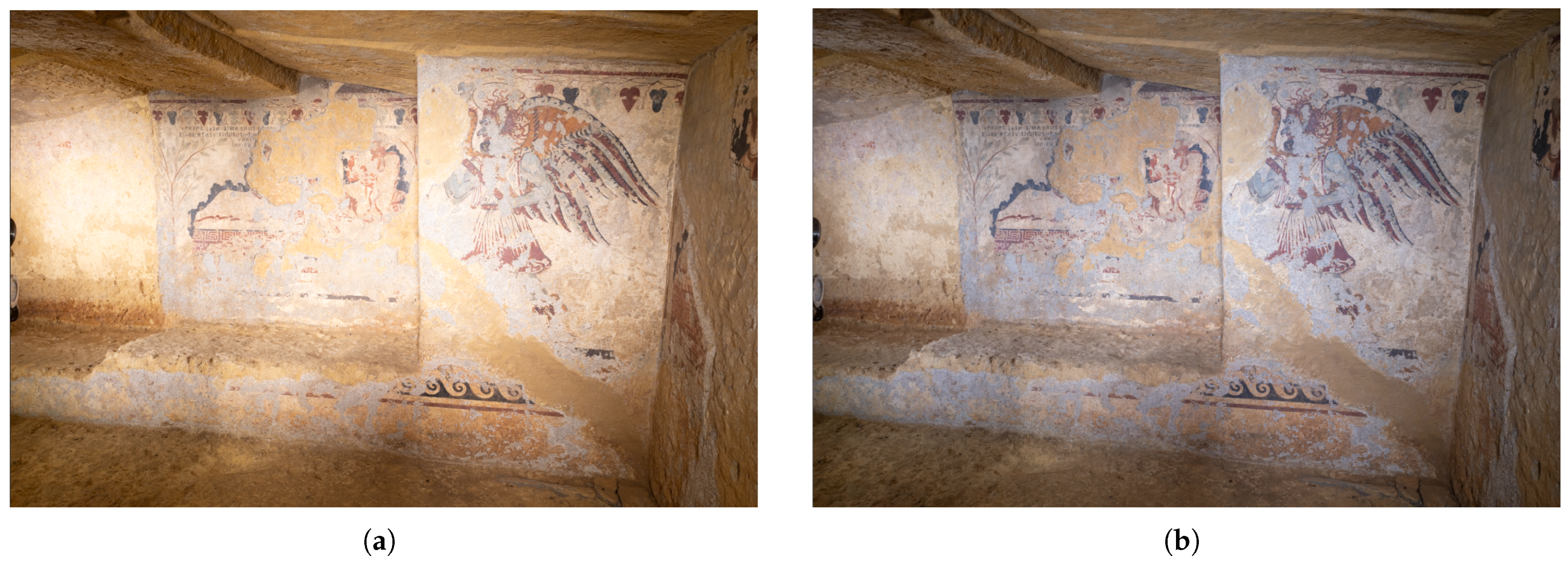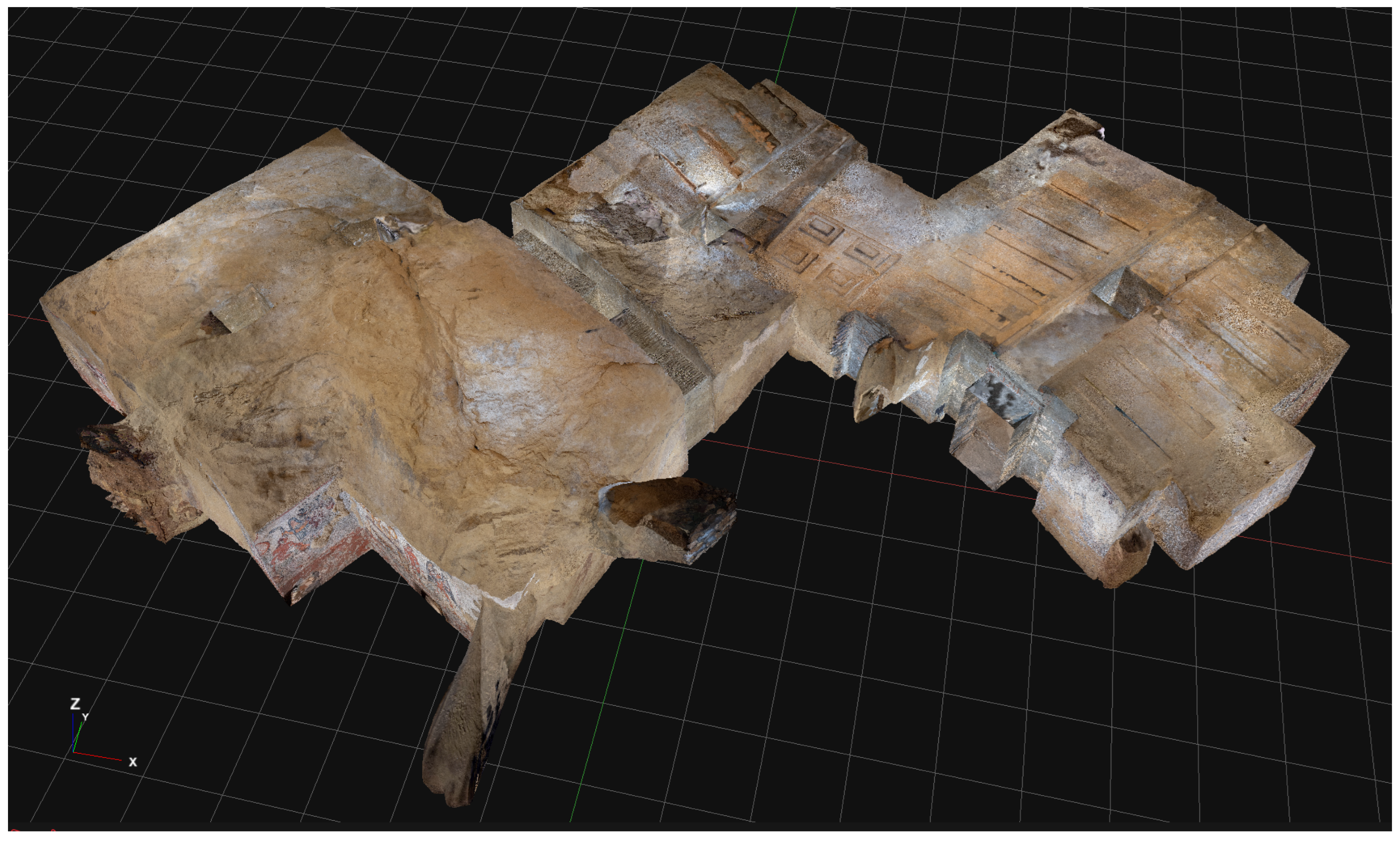 - Wong, L.; Rose, W.; Dhanda, A.; Flavin, A.; Barazzetti, L.; Ouimet, C.; Santana Quintero, M. Maximizing the Value of Photogrammetric Surveys in the Conservation of Wall Paintings. Int. Arch. Photogramm. Remote Sens. Spat. Inf. Sci. 2021, 46, 851–857. [Google Scholar] [CrossRef]