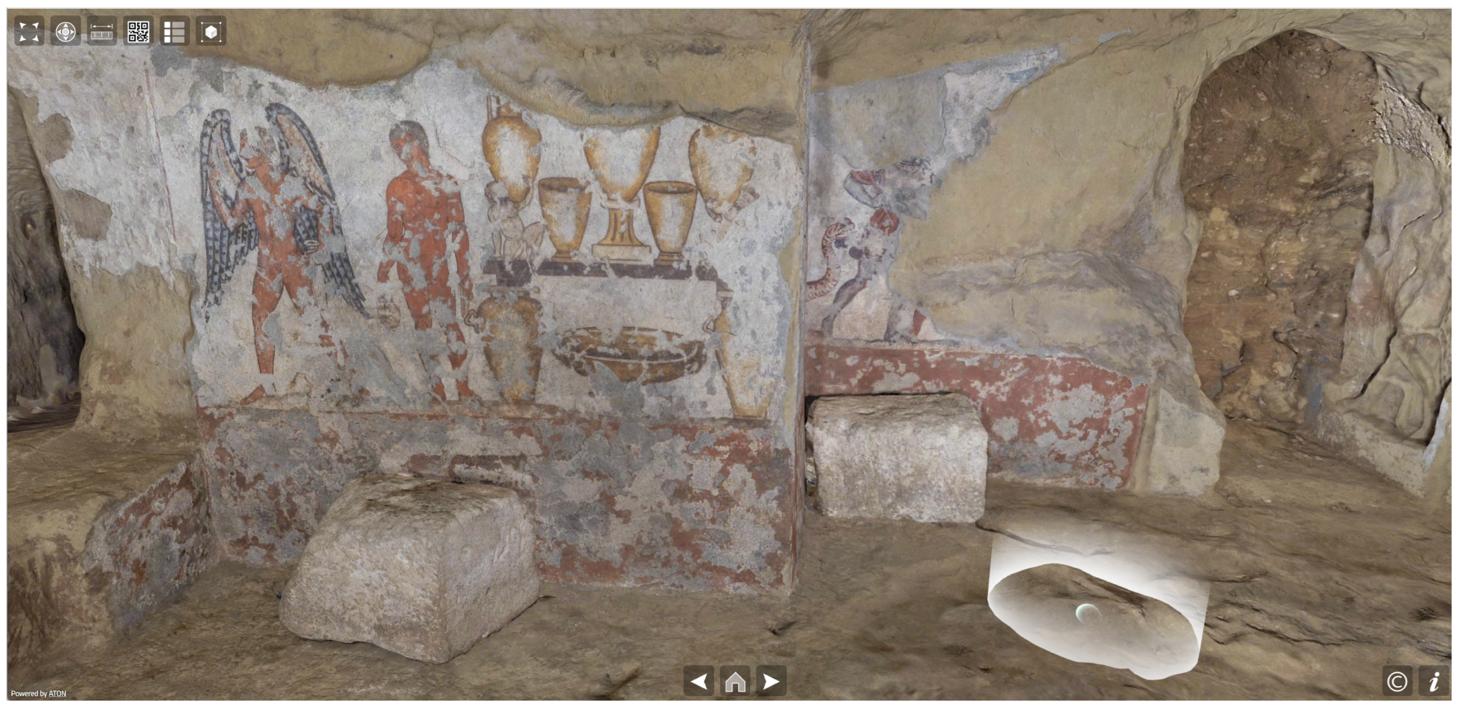- Aricò, M.; La Guardia, M.; Lo Brutto, M. Web Exploration Of Cultural Heritage With Limited Accessibility: First Experimentation For Hypogeum Archaeological Sites. Int. Arch. Photogramm. Remote Sens. Spatial Inf. Sci. 2023, XLVIII-M-2-2023, 111–117. [Google Scholar] [CrossRef]