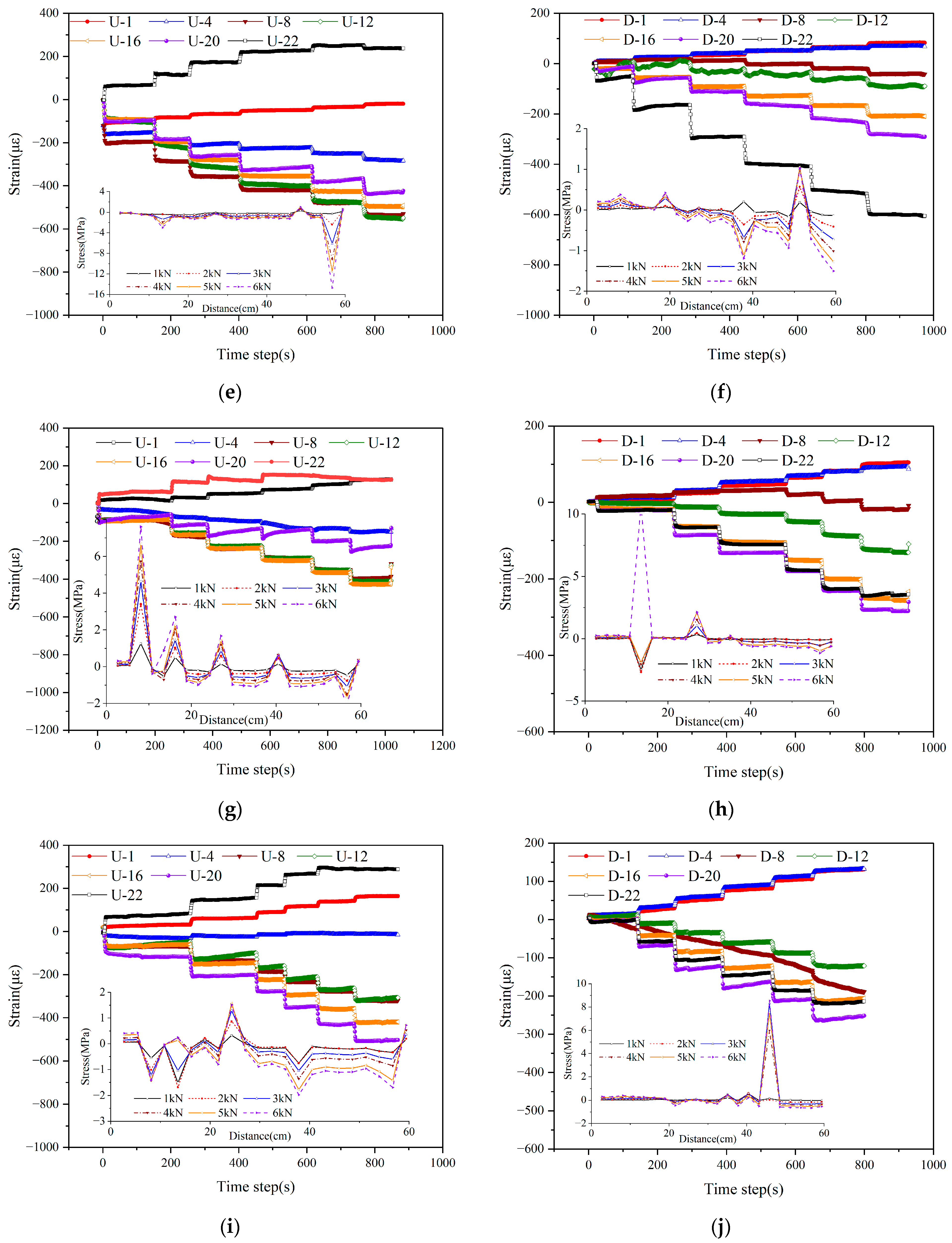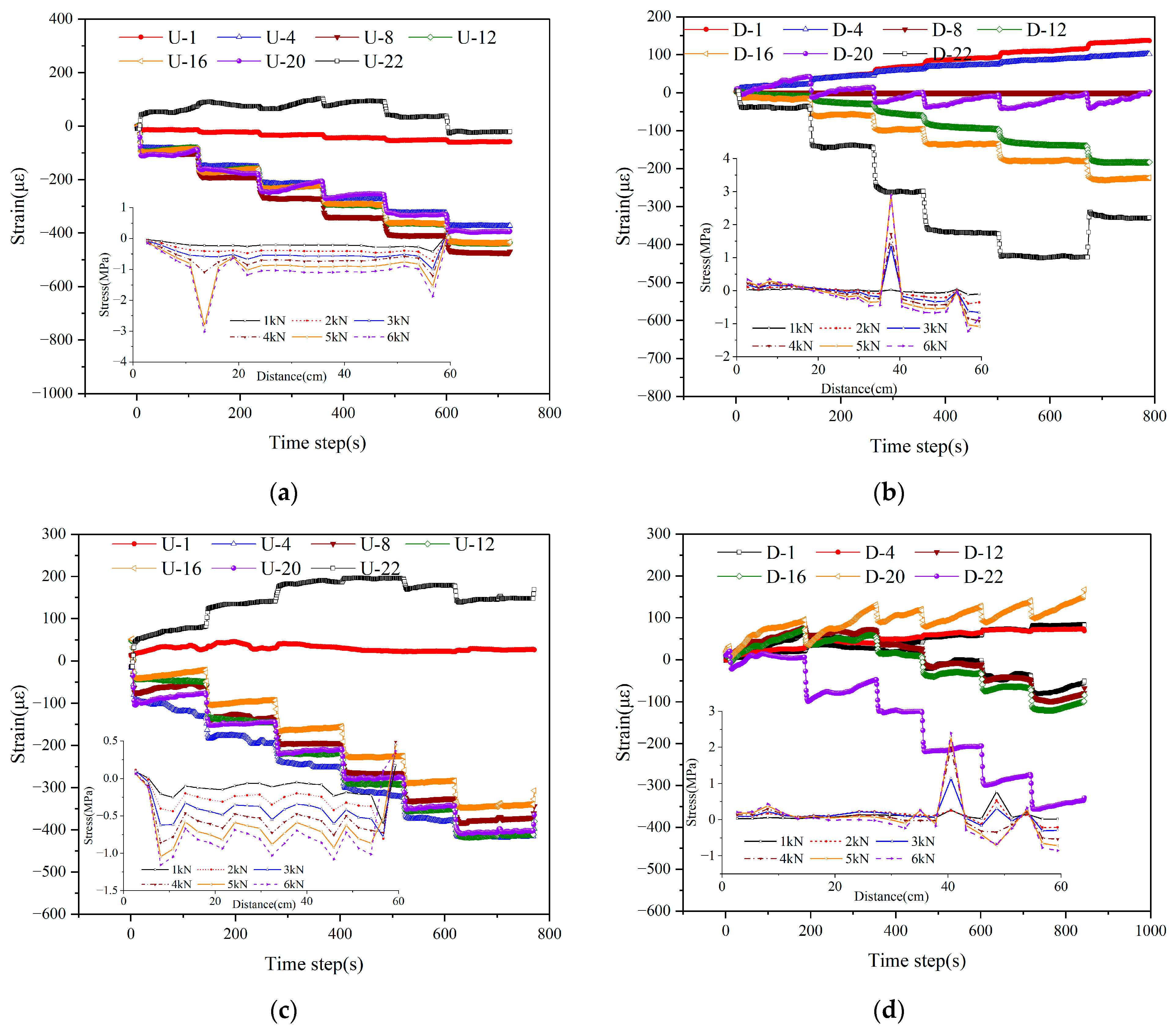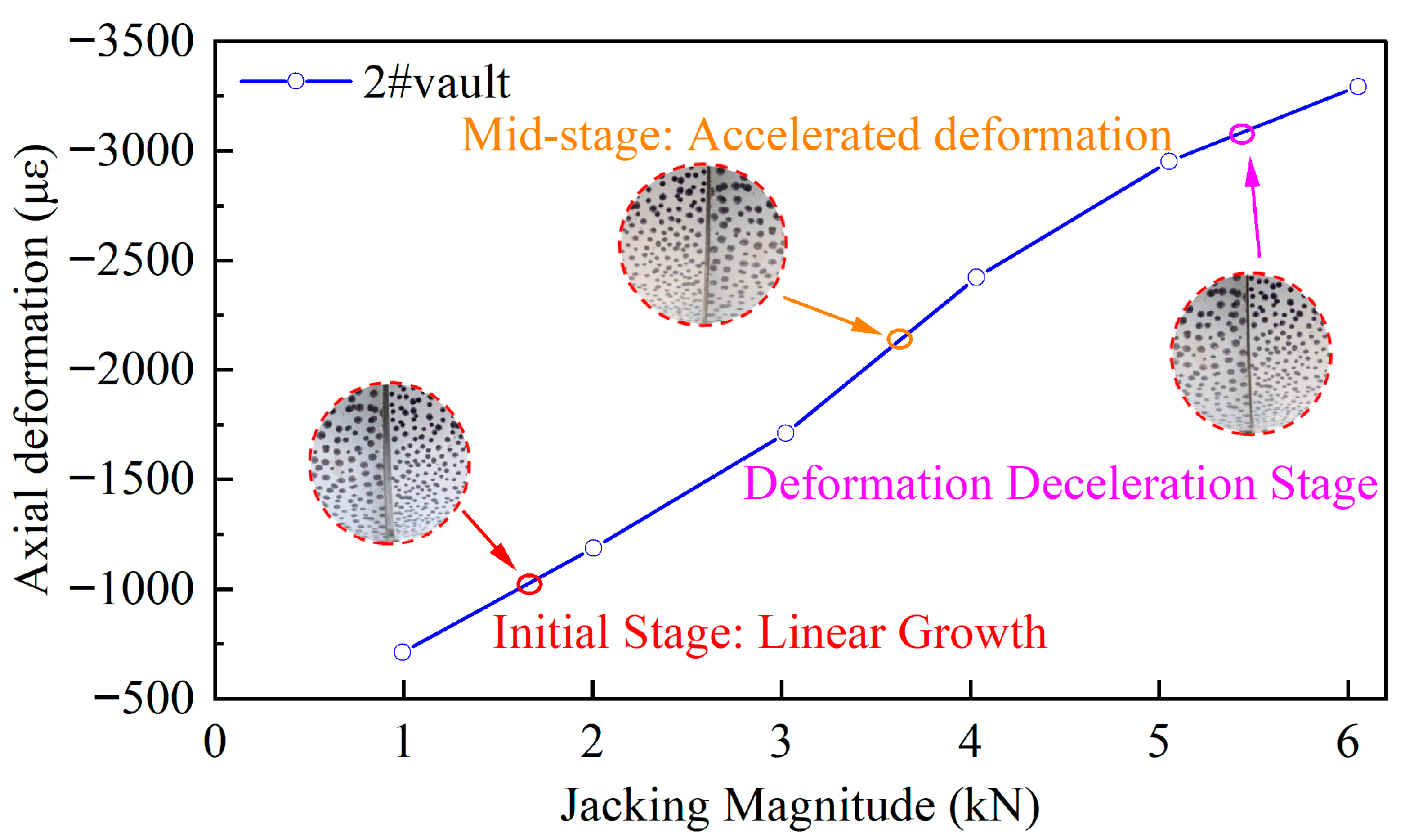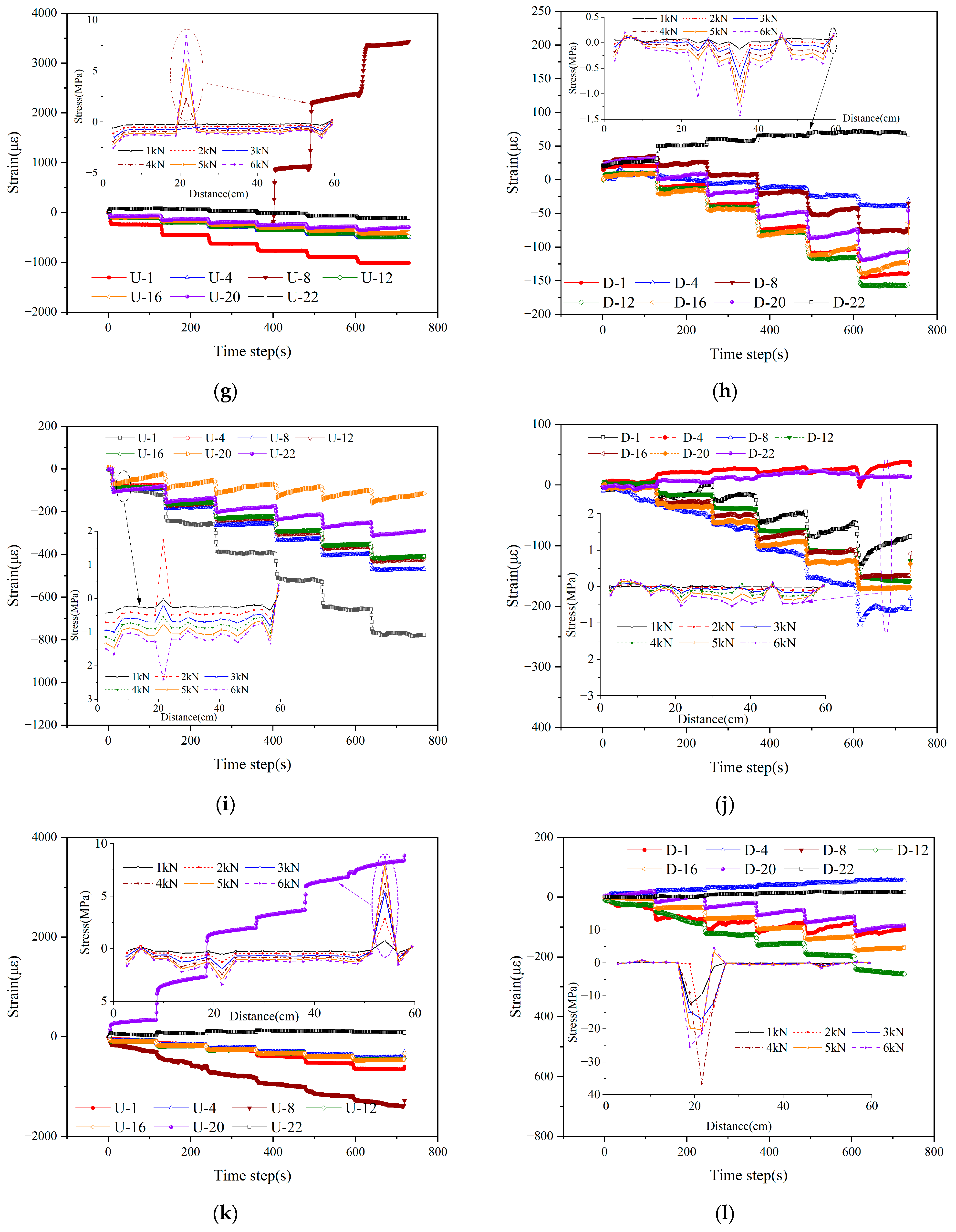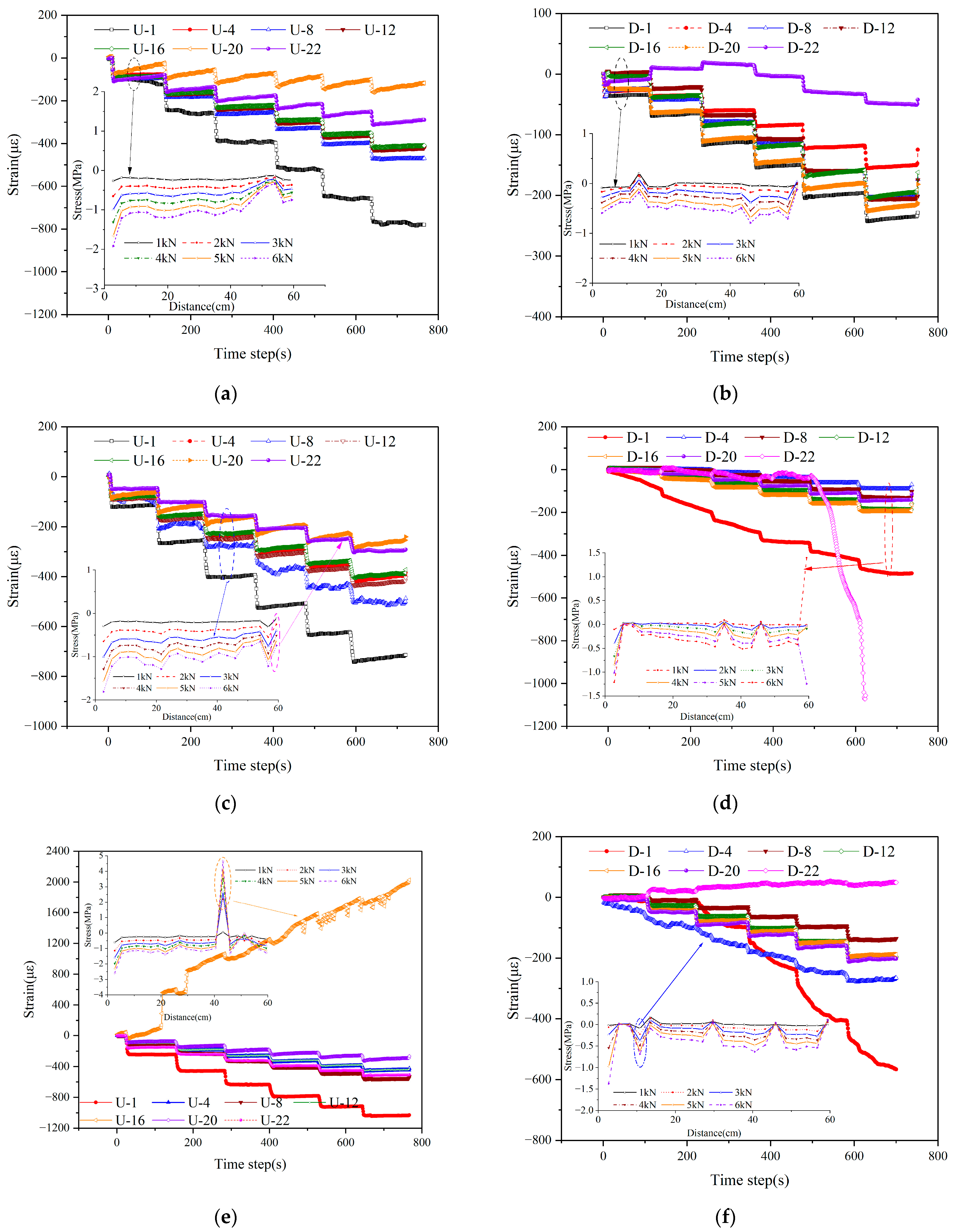 4.1. Characteristics of Segment Stress and Deformation Fields
