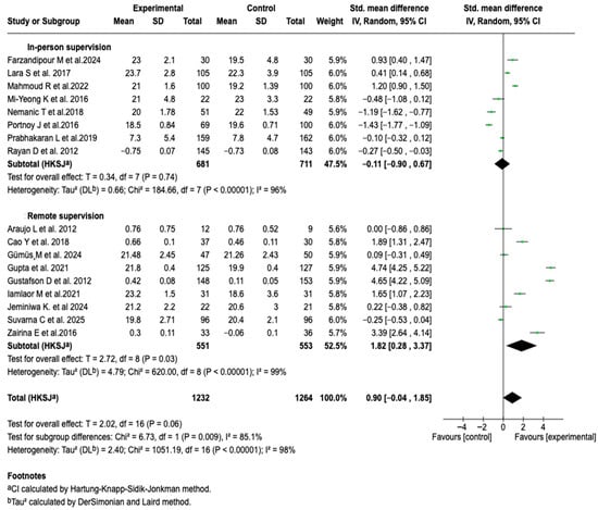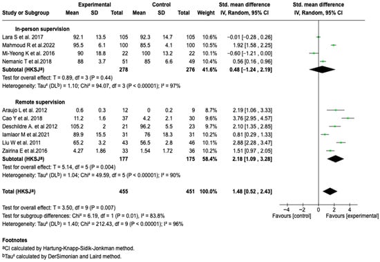 Subgroup analysis of the effect of supervision mode on the efficacy of digital health tools for asthma control [,,,,,,,,,,,,,,,,].