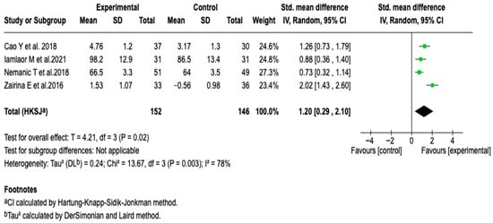 For continuous data, we extracted means and standard deviations (SD). When studies reported medians and interquartile ranges, we applied established methods for conversion to means and SDs. If outcomes were assessed at multiple time points, we prioritized the mean difference or, alternatively, the most recent available measurement.
