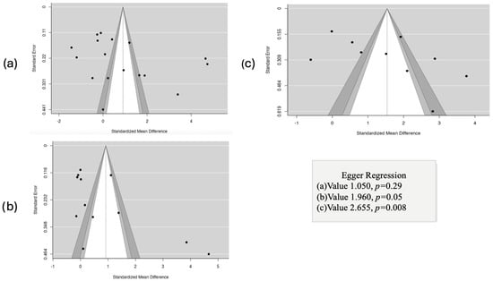 Publication bias was assessed by visual inspection of funnel plots and formally with Egger’s test in Jamovi® software (version 2.3). Finally, we assessed the overall certainty of the evidence using the GRADE (Grading of Recommendations, Assessment, Development and Evaluations) framework. Each outcome was rated as high, moderate, low, or very low based on risk of bias, inconsistency, imprecision, indirectness, and publication bias. These findings were compiled in a “Summary of Findings” (SoF) table.