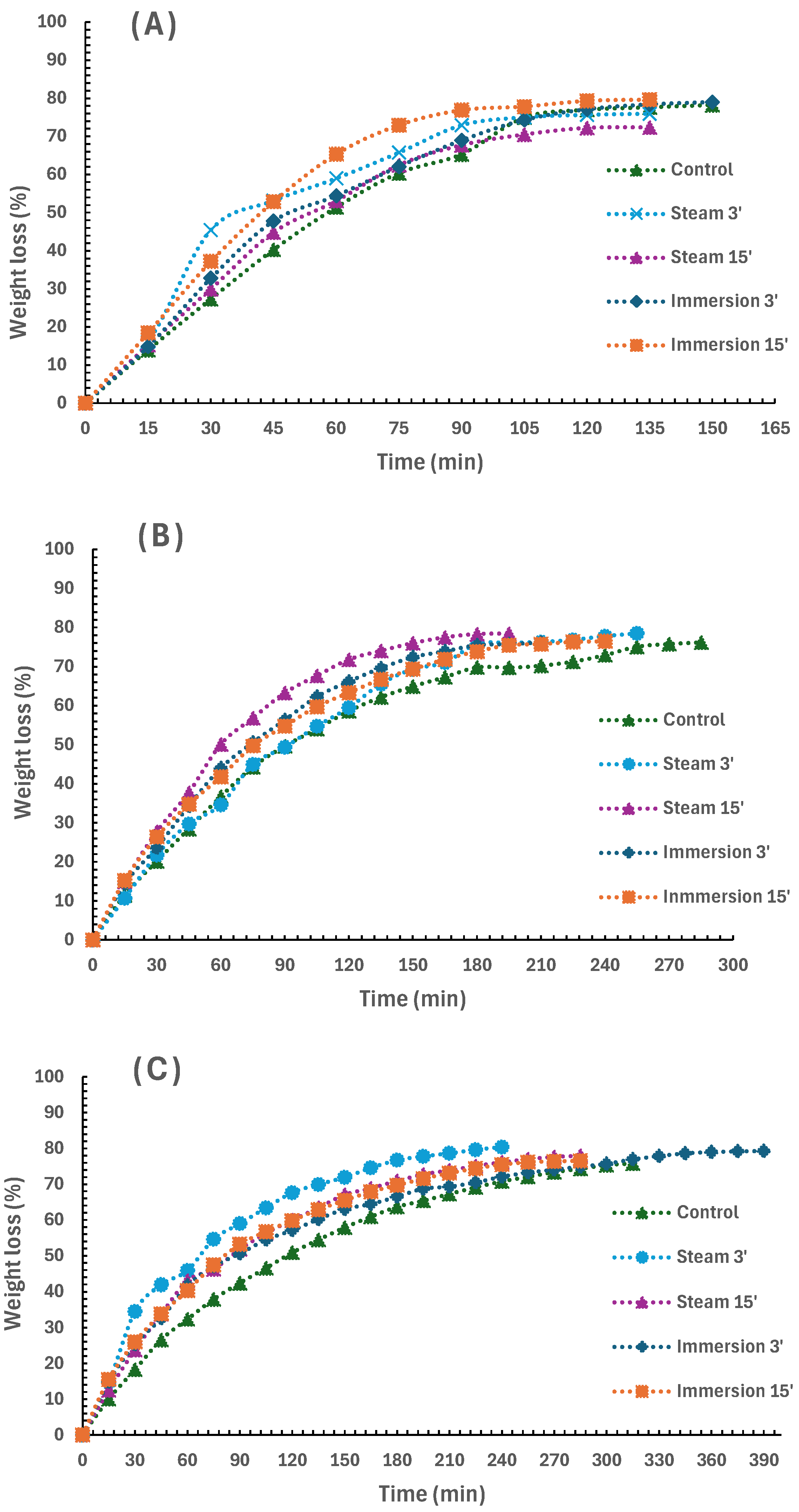 | Control | Steam (3 min) | Steam (15 min) | Immersion (3 min) | Immersion (15 min) | |