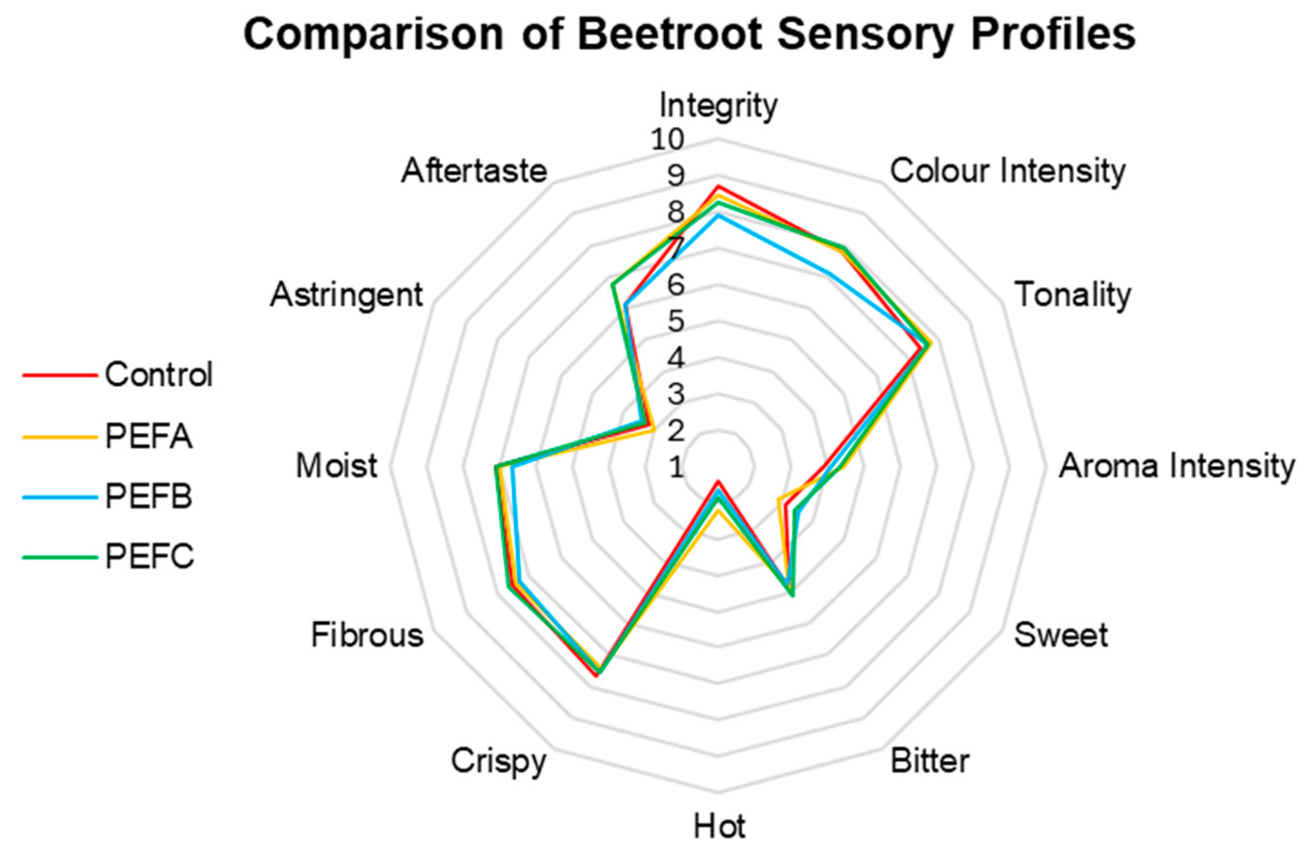 | Beetroot | Fat | 2.92 ± 0.41 | 2.70 ± 0.30 | 2.06 ± 0.20 | 4.13 ± 1.58 | 0.084 | 0.545 |