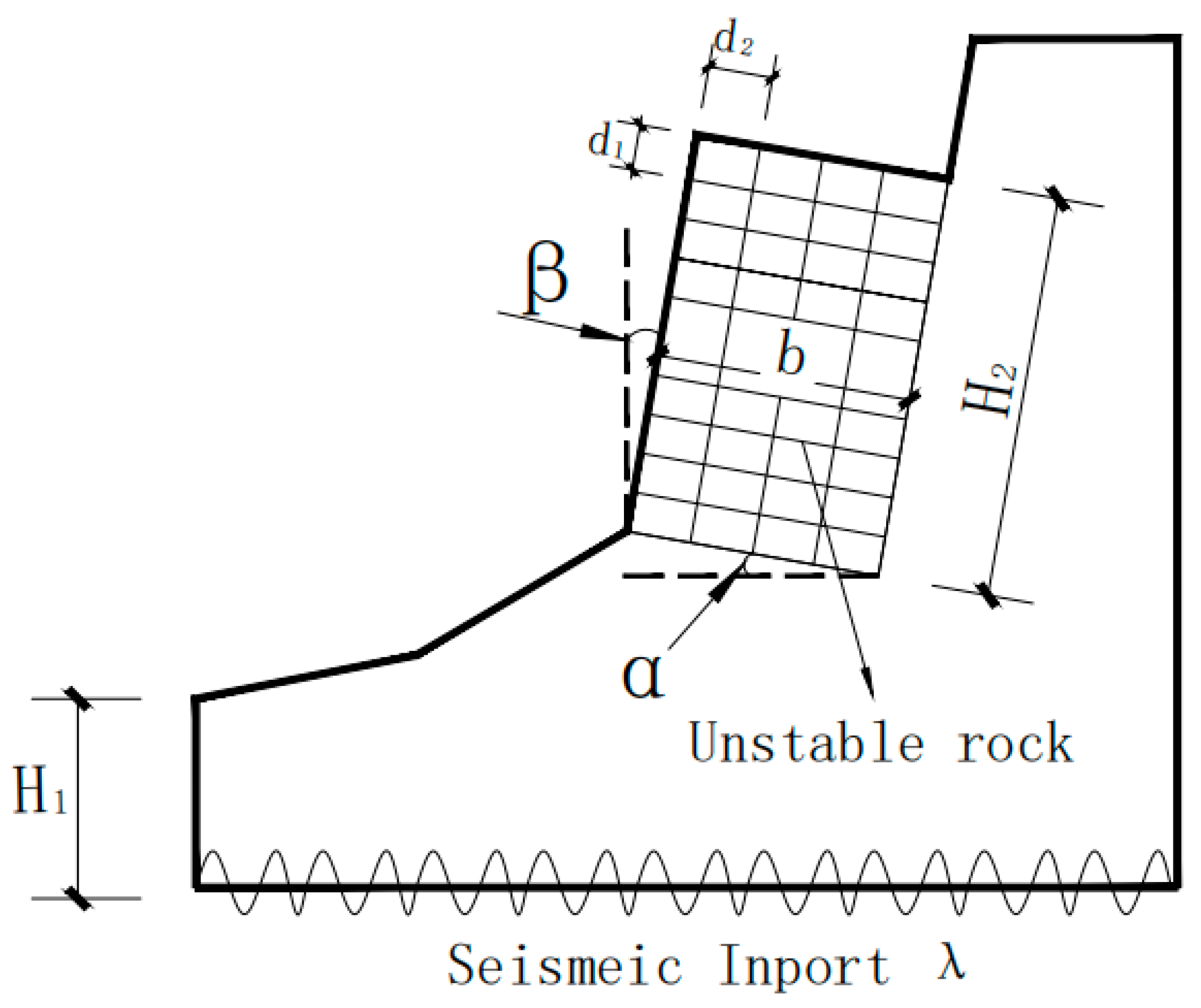 - Fu, X.; Sheng, Q.; Tang, H.; Chen, J.; Du, Y.; Zhang, Z.; Mei, H. Seismic stability analysis of a rock block using the block theory and Newmark method. Int. J. Numer. Anal. Methods Geomech. 2019, 43, 1392–1409. [Google Scholar] [CrossRef]