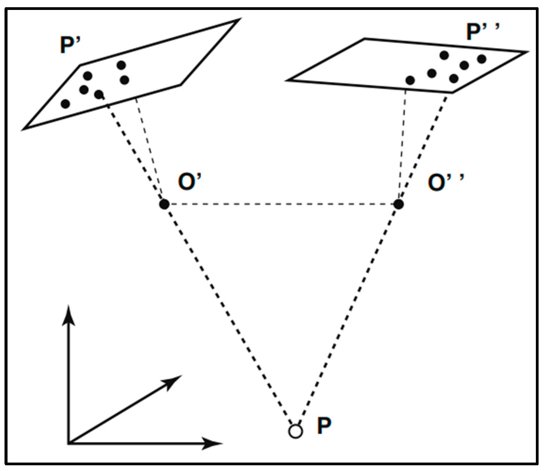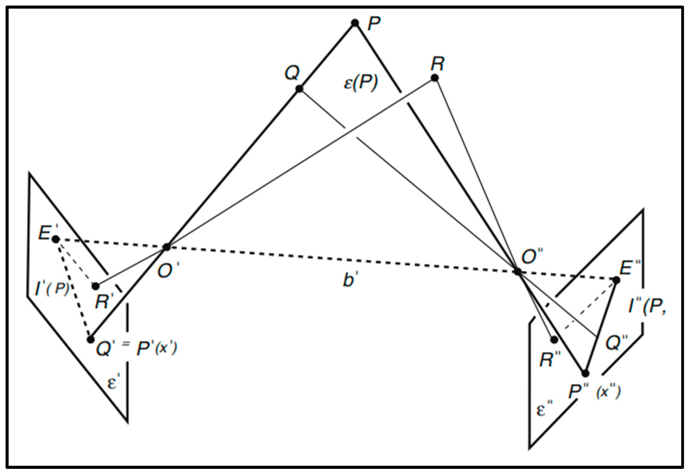 Figure 6. Elements of epipolar geometry in stereoscopic photogrammetry [34].