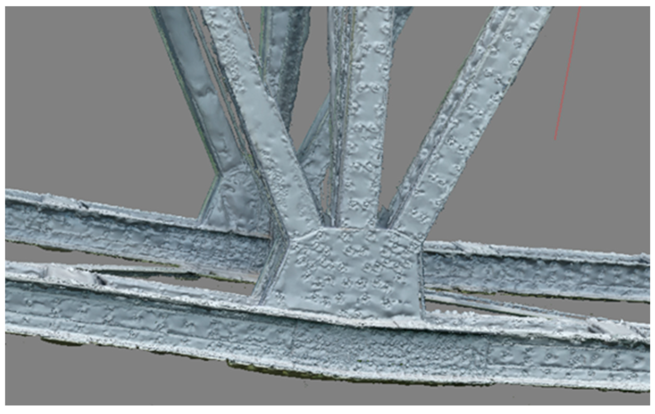 Figure 22. Detail view on the truss joint of the Niestepowo Bridge, Agisoft 3D model.