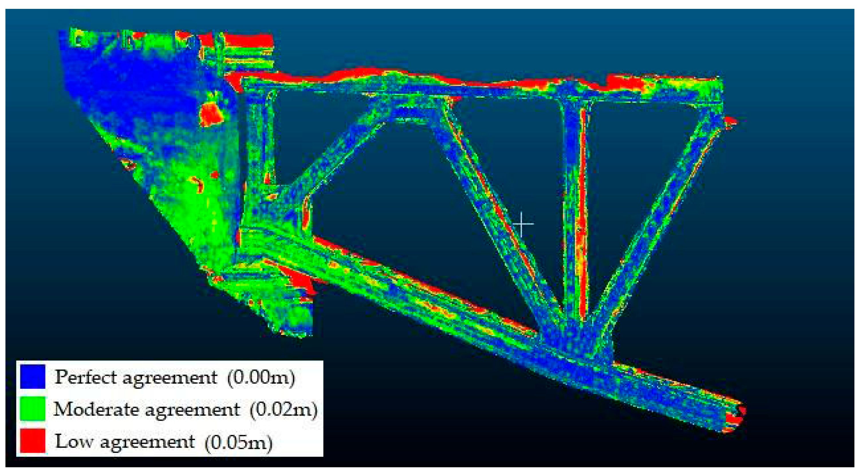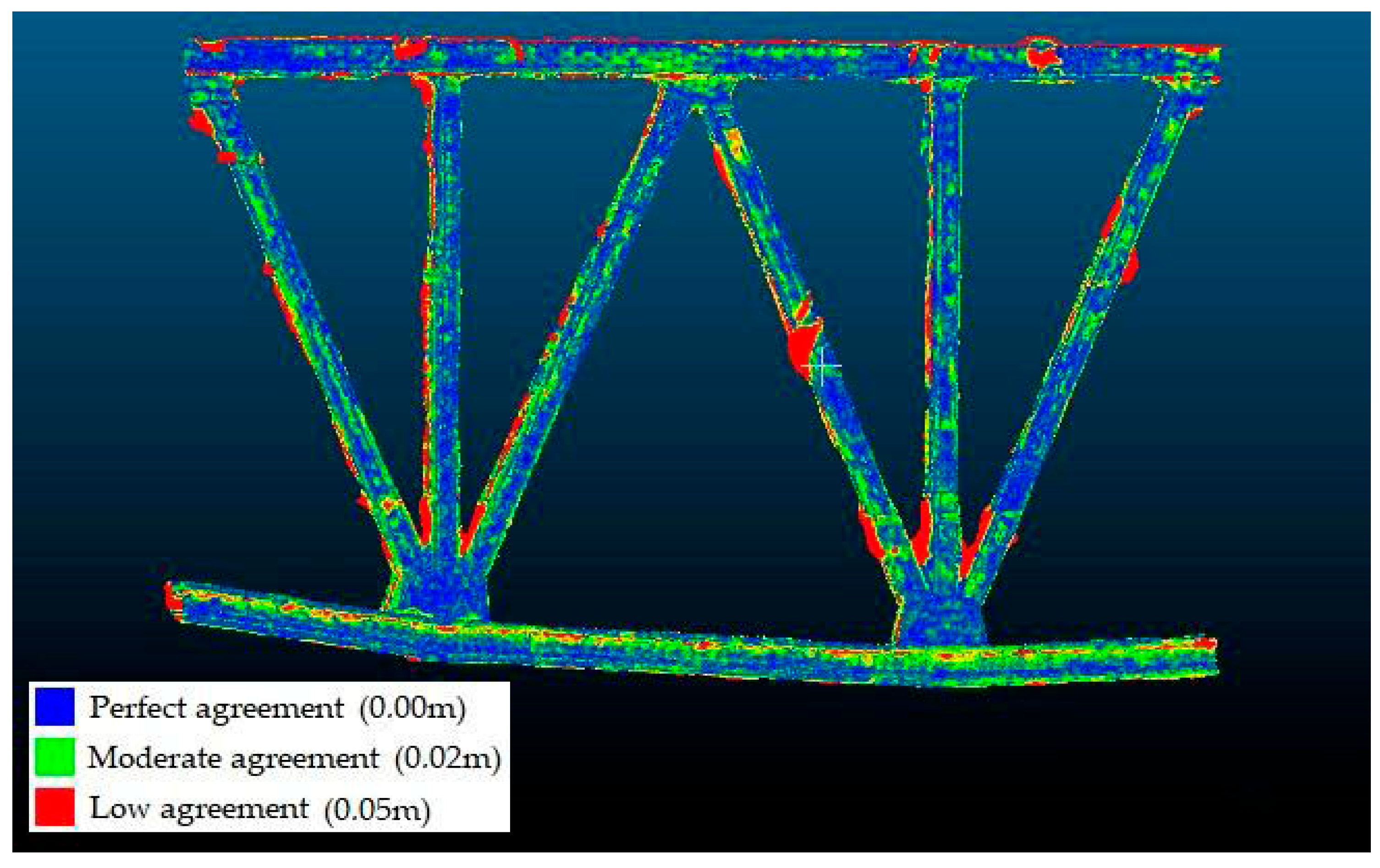 Figure 28. Deviation map C2C of a selected fragment of the bridge truss.