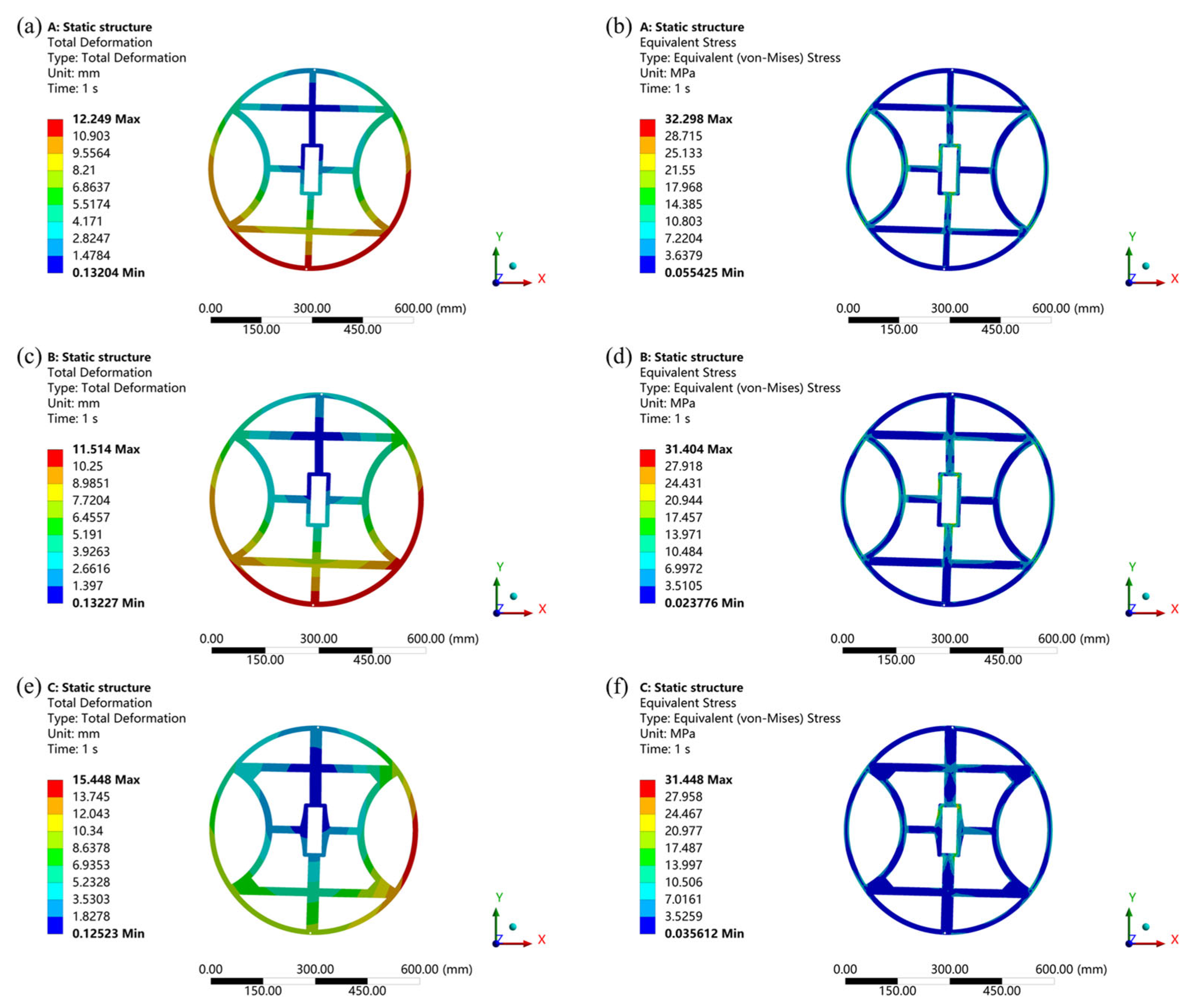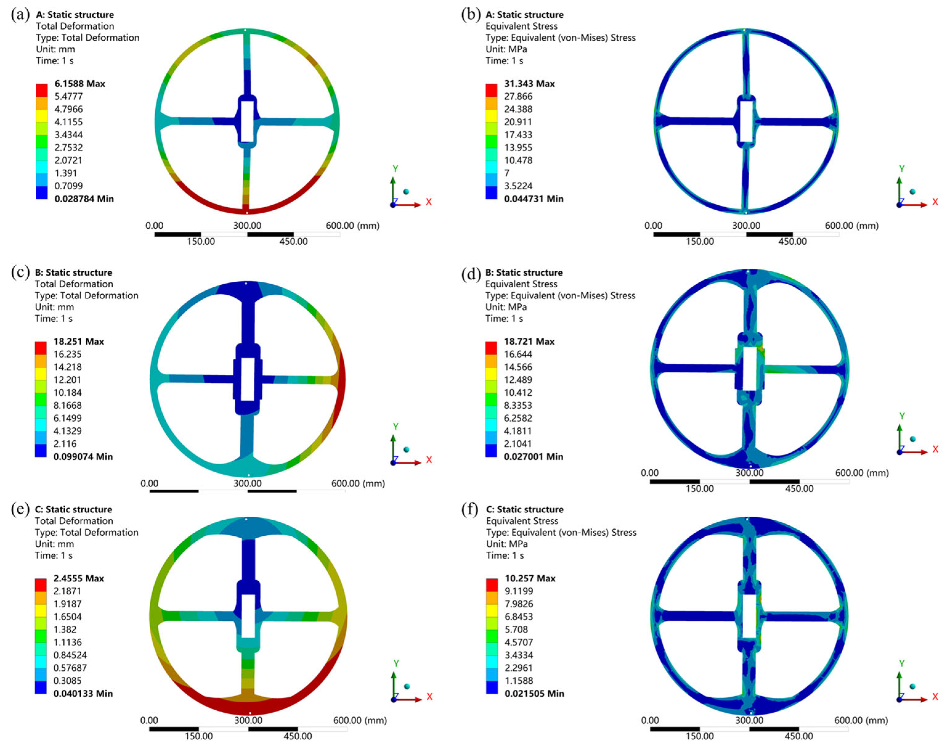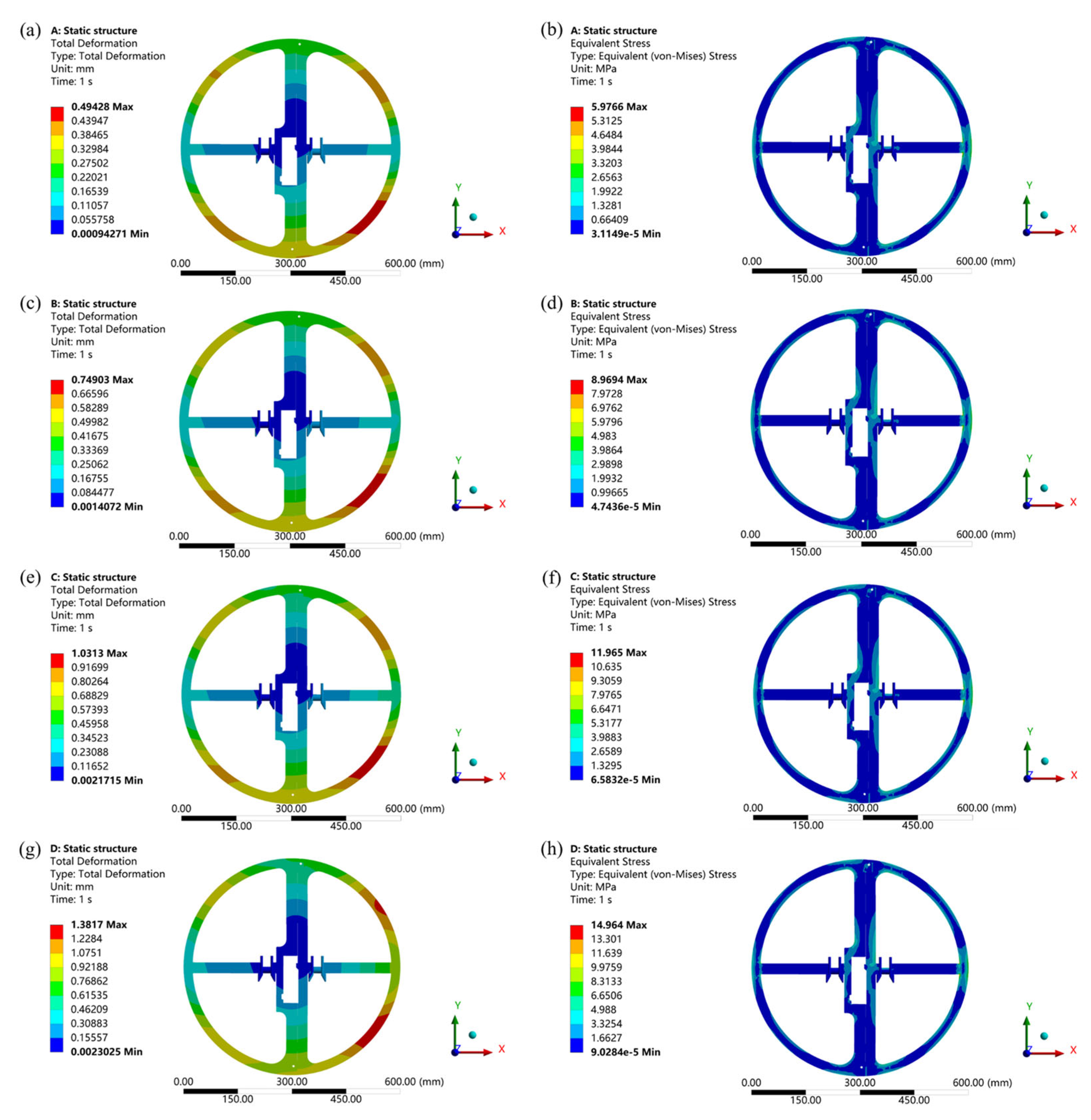 4.1.2. Deformation Characteristics and Stress Distribution of the Spacer Ring in a Constant Direction