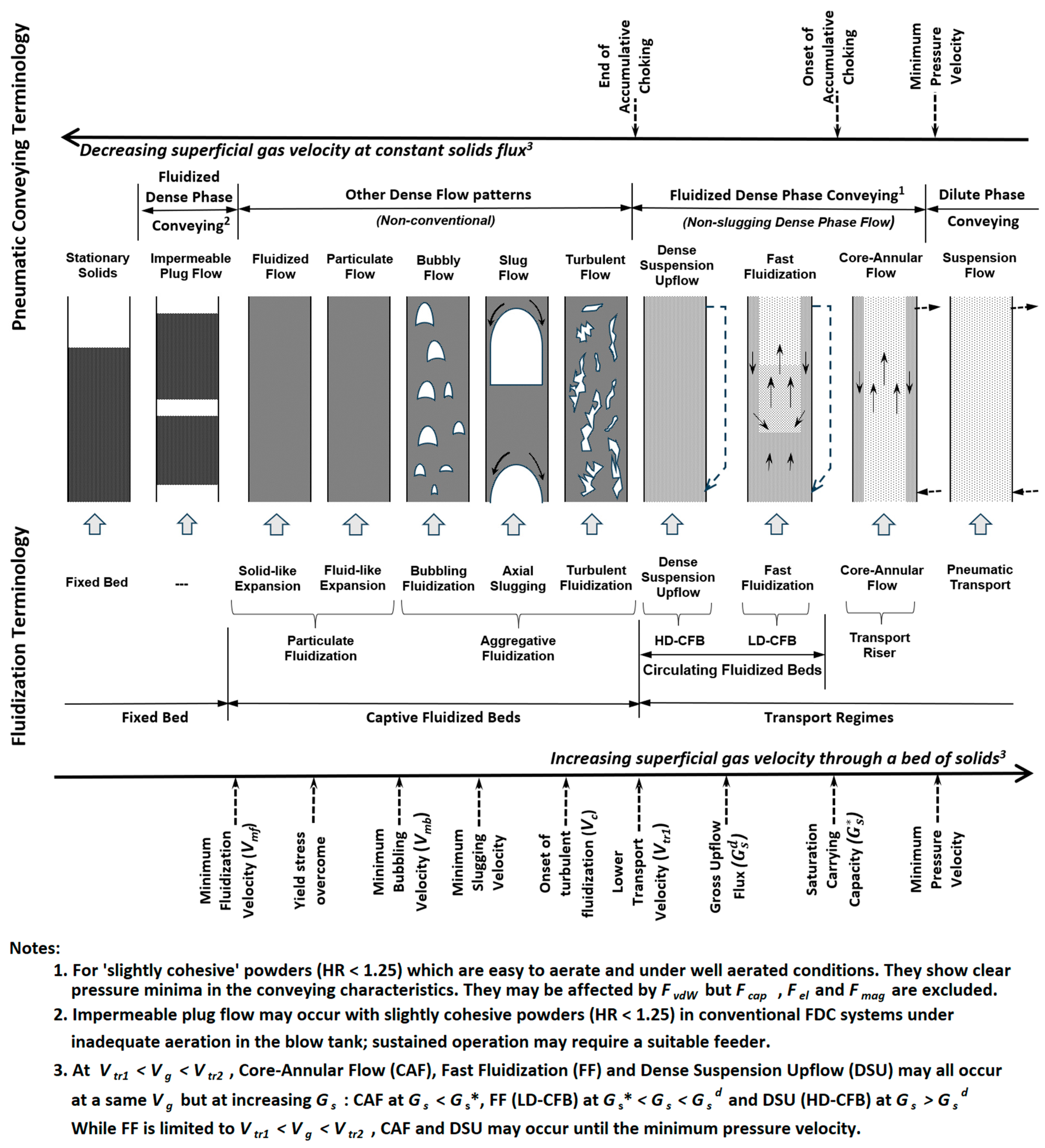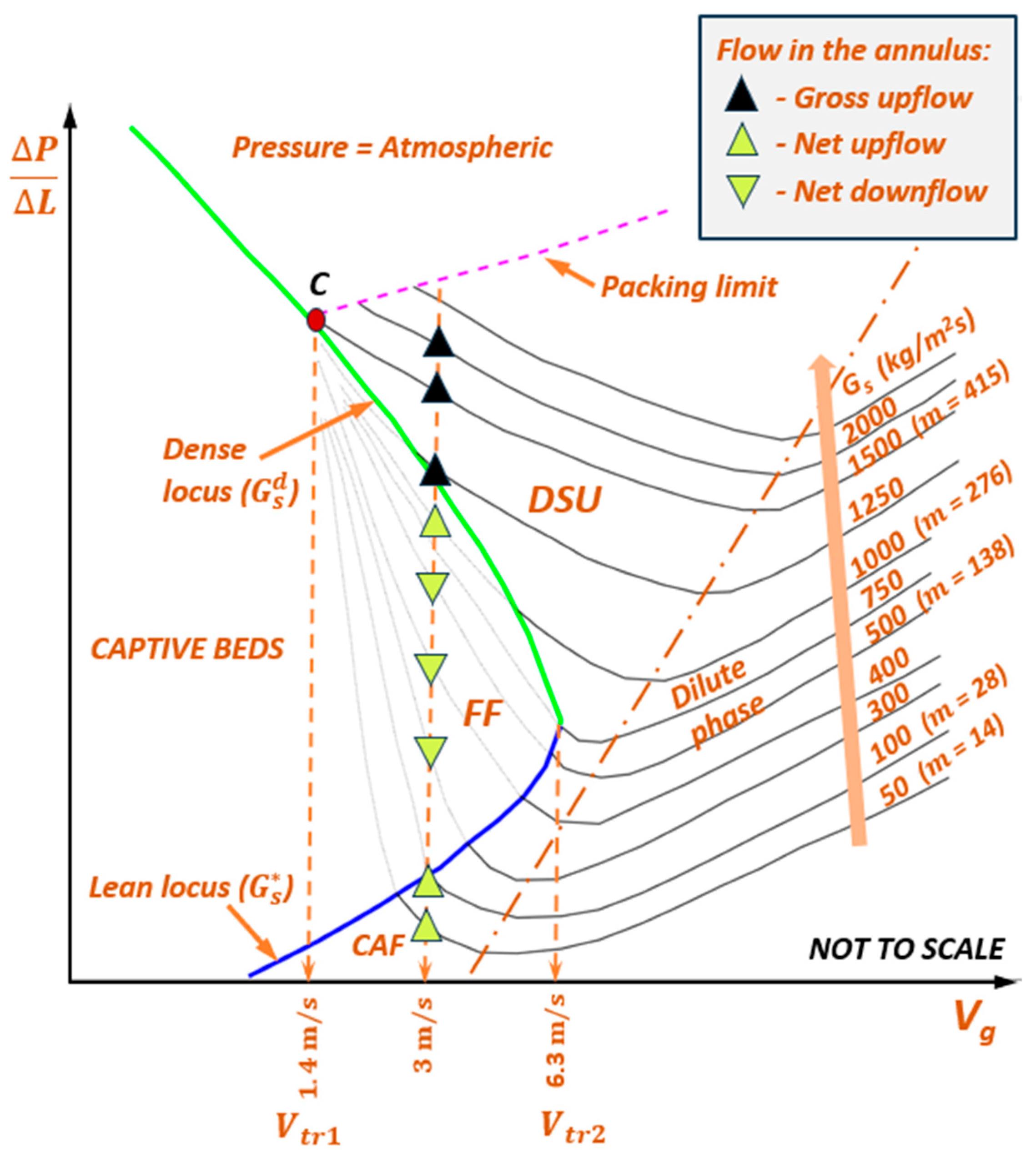 - DSU, FF, CAF, and dilute phase regimes are demarcated per the criteria in Table 2.