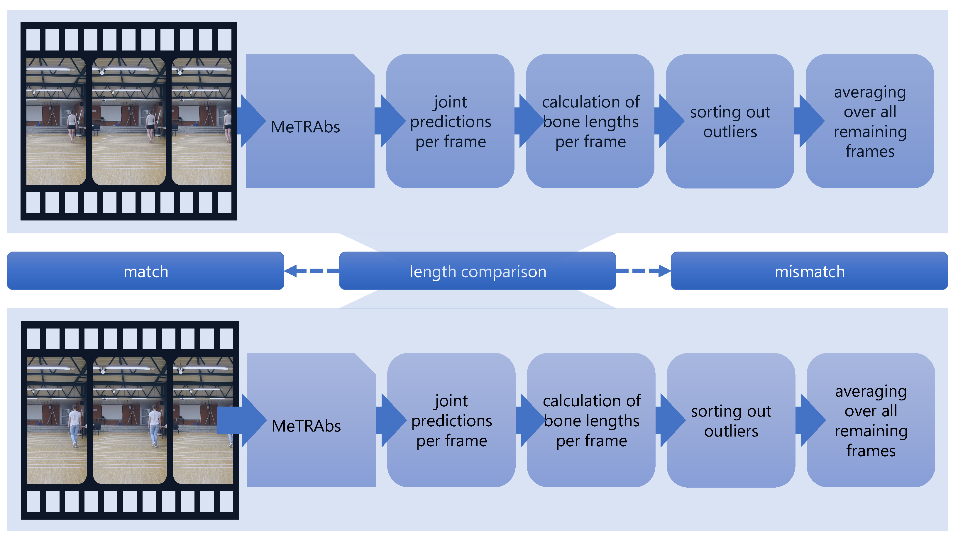 - Richter, S.; Labudde, D. Potential Approach for Targeted Matching of People in Video Footage Based on 3D Human Pose Estimation. In INFORMATIK 2023; Gesellschaft für Informatik e.V.: Bonn, Germany, 2024; pp. 371–380. [Google Scholar] [CrossRef]