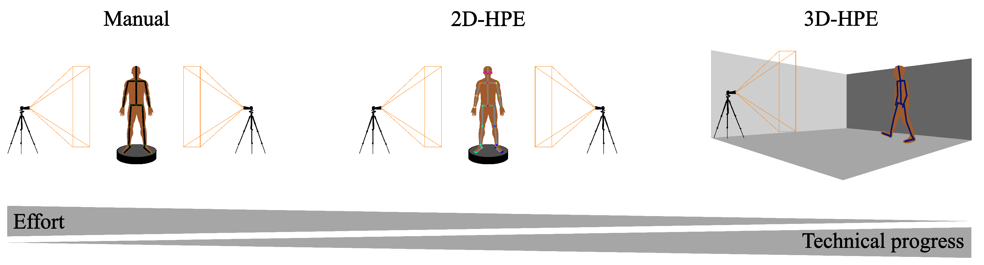 14]. The same applies to the OpenPose-based variant of the method. Although this still offers potential for the future, it is clearly dependent on developments in 2D-HPE. However, not only 2D HPE-based approaches, but especially 3D HPE-based approaches offer the potential to significantly reduce effort, as shown schematically in
