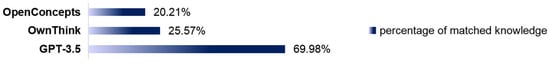 Comparison of knowledge retrieval capabilities between LLM and KGs: We assess the knowledge retrieval performance of two large-scale Chinese KGs by calculating the success rate of retrieving event argument knowledge, compared with knowledge generated by GPT-3.5, for all events in DuEE. As illustrated in Figure 6, GPT-3.5 demonstrates significantly stronger capabilities in generating knowledge for event arguments: it outperforms KGs in coverage, as the latter can only retrieve knowledge for a limited subset of arguments, primarily constrained by their dataset scale. Moreover, GPT-3.5 demonstrates superior ability to interpret compound nouns within event arguments and generate relevant knowledge, whereas KG-based methods often face challenges with such complex linguistic structures.