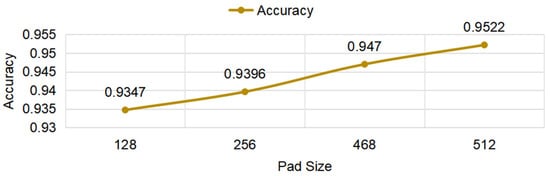 Finally, with the random seed fixed at 42, we comprehensively evaluated the impact of different padding sizes on model performance. The experimental results in Figure 10 show that the CEP-PKA model achieves the highest prediction performance when the padding size is set to 512. As the padding size decreases, the model’s performance gradually approaches that of relying solely on the original event text.