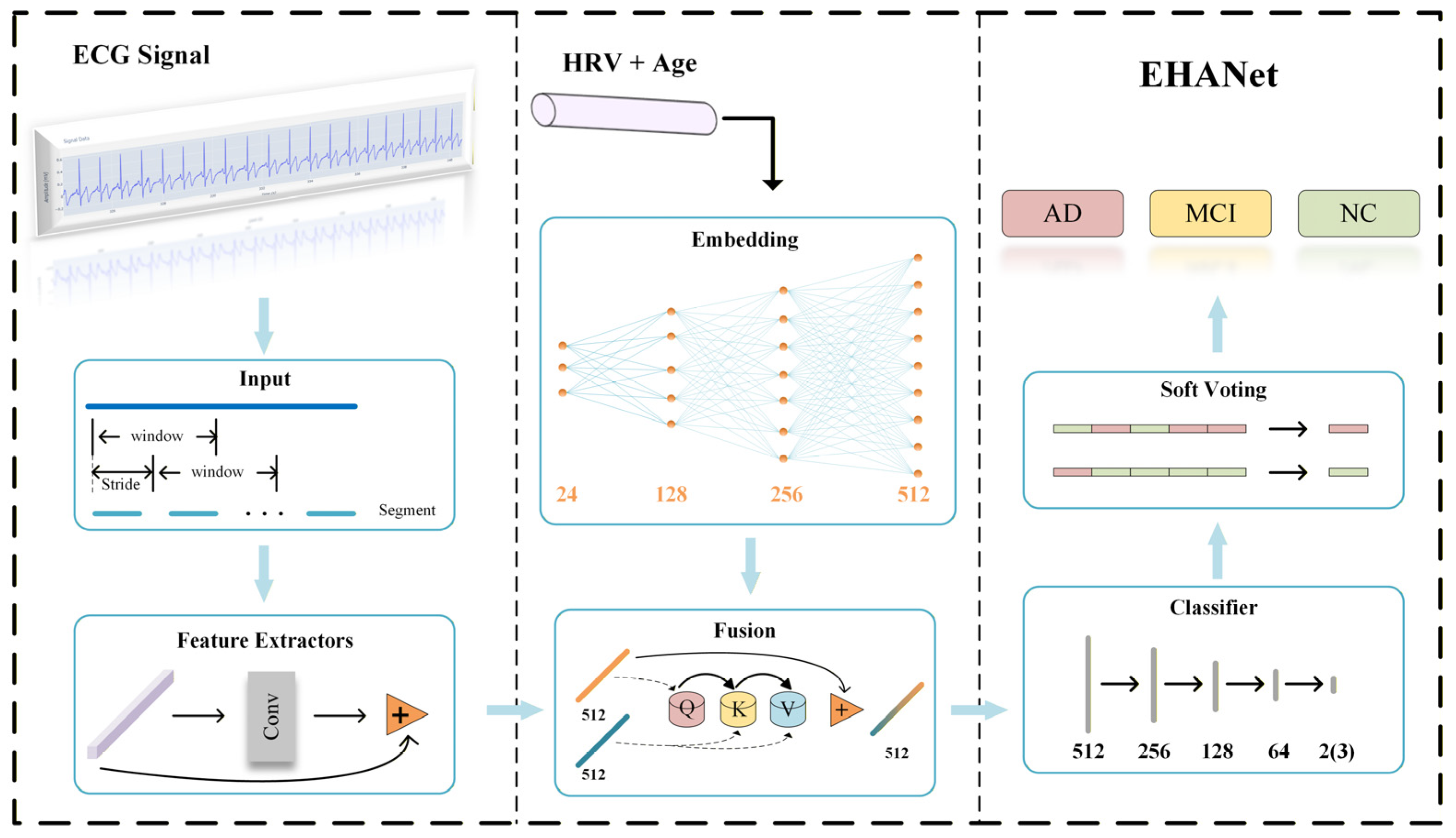 Geng, D.; Wang, Q.; Zheng, W.; Yin, Y.; Xu, P.; Xu, G. ECG- and HRV-Based Hybrid Architecture—Early Detection of Alzheimer’s Disease and Mild Cognitive Impairment. Appl. Sci. 2025, 15, 12555. https://doi.org/10.3390/app152312555