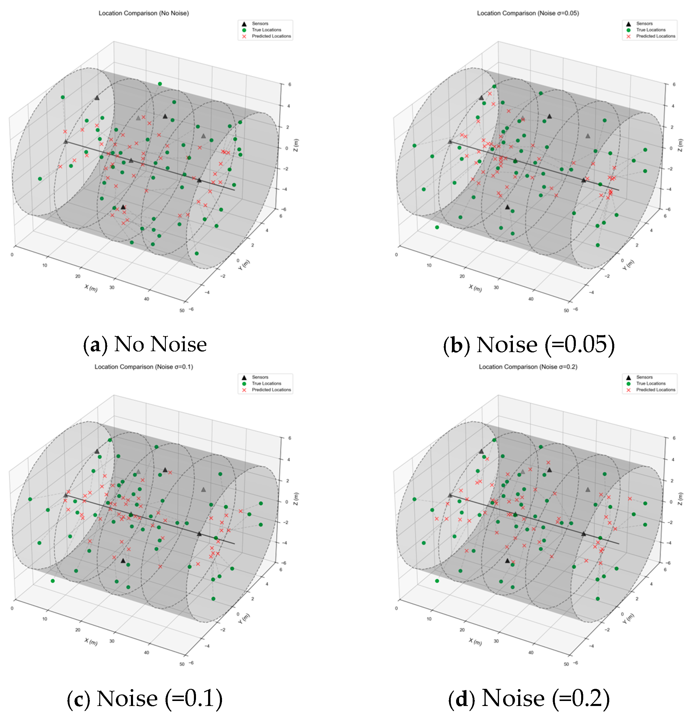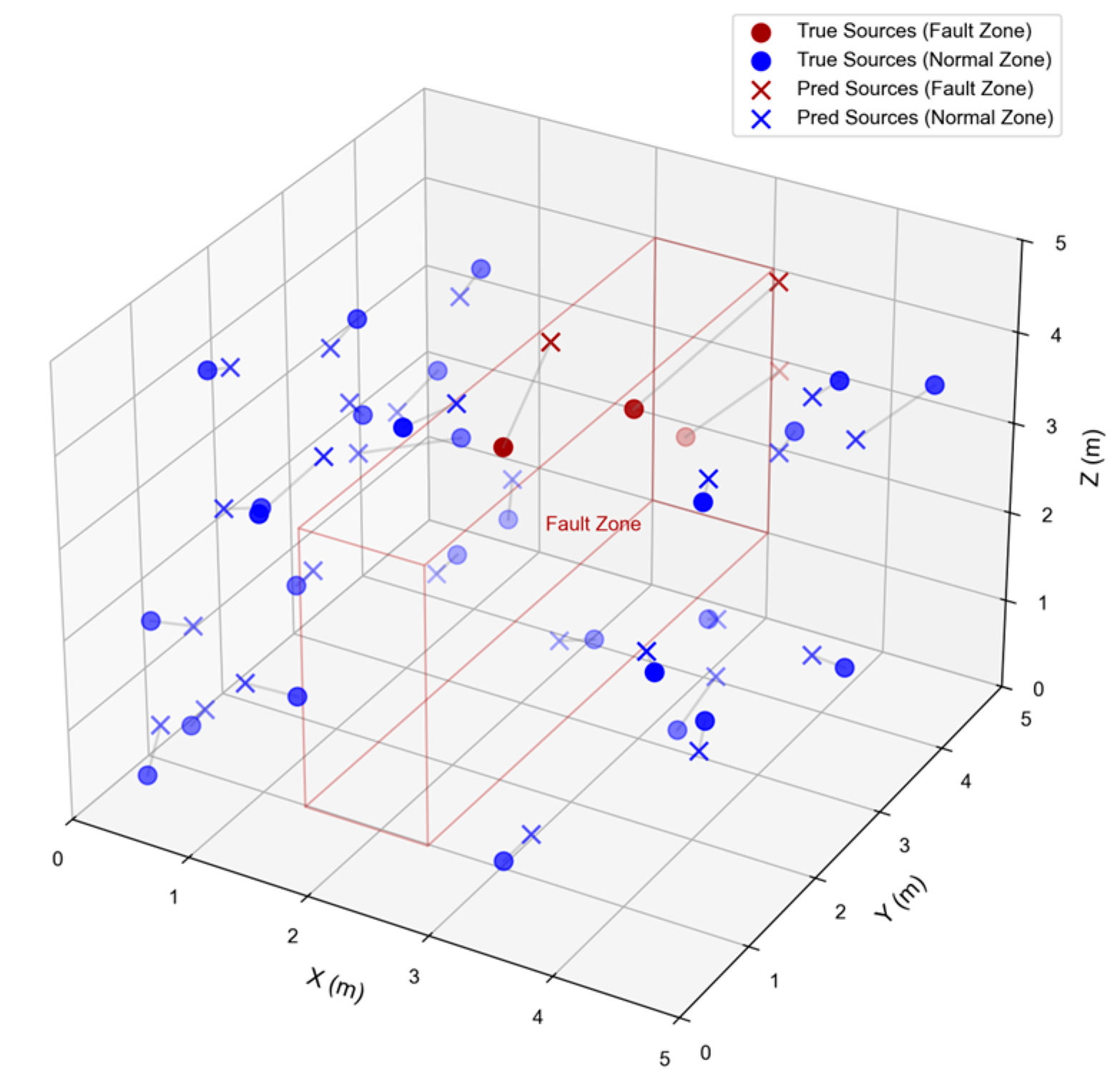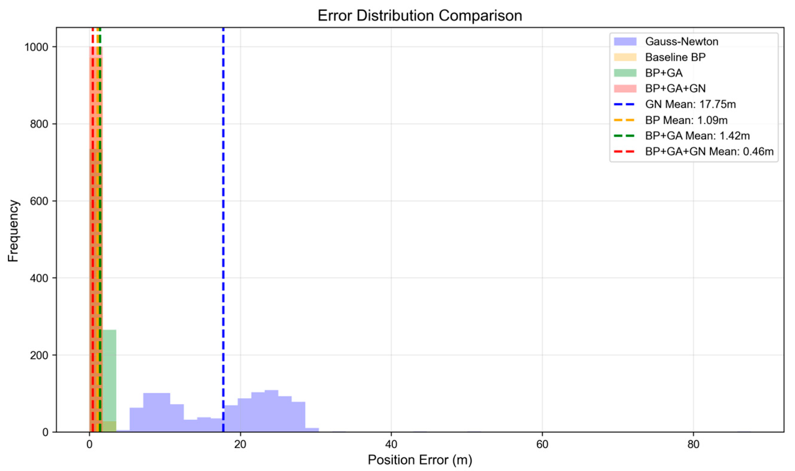 - The BP-GA-GN fusion algorithm adopts a deep integration of physical models and data-driven approaches. By relying on the physical geometric model of seismic wave propagation, it constrains and refines the learning results of the BP network, bridging the gap between pure data-driven “black-box” models and physical laws to some extent. This mechanism not only enhances the physical interpretability and reliability of the localization results but also accelerates convergence speed, overcoming the accuracy stagnation problem that may occur during BP network training.
