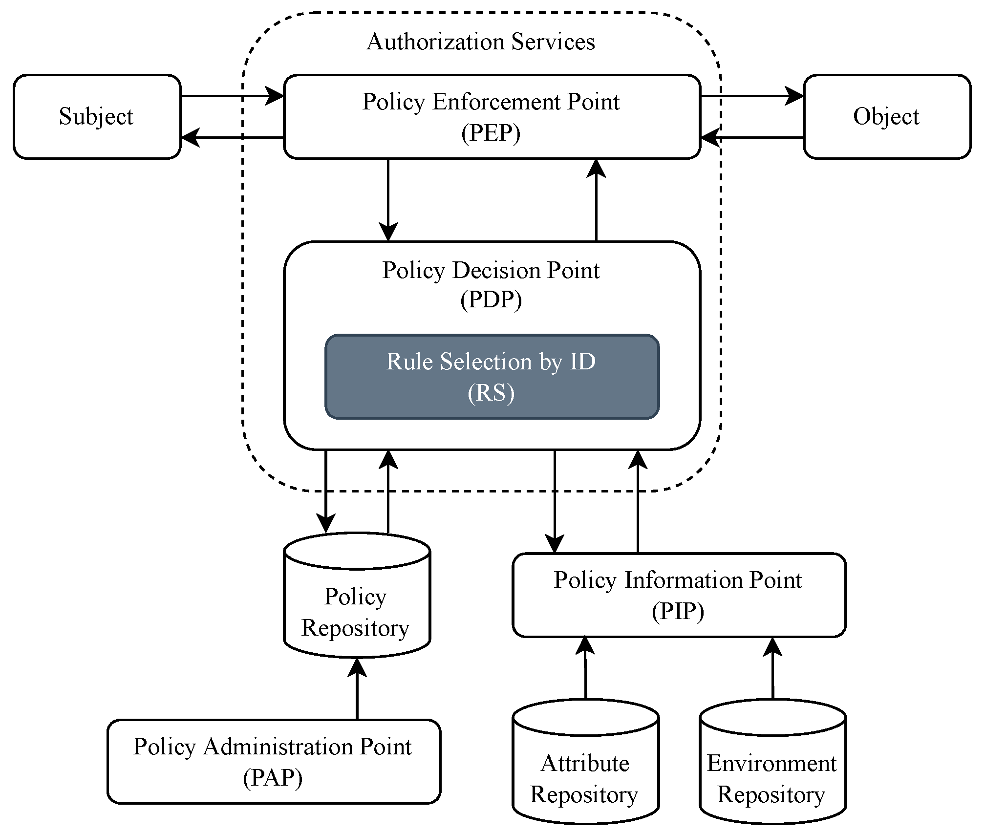 15]. The ABAC model uses attributes to make access control decisions, making it flexible, scalable, and context-sensitive. The attributes are the characteristics of an entity (subject, object, environment) in the AC mechanism. The ABAC policy is the set of authorization rules defined over these attributes. An ABAC rule specifies whether a subject can access a resource in a particular environment. When an access request is received, the ABAC model evaluates the subject (requester)’s attributes, the object’s attributes, and the environmental conditions with a set of rules (policy) for overall attributes.