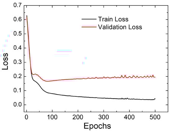 The results of the analysis show a clear dynamic of training and validation losses, which allows us to assess the learning progress of the model and its generalization capabilities (Figure 1). From epoch 0 to 75, training loss dropped from 0.65 to 0.10. Validation loss decreased from 0.65 to 0.22. This indicates that the model is learning general data patterns properly, and the accuracy of its predictions in both the training and validation sets is consistently improving. However, from approximately epoch 75, it is observed that the training loss continues to decrease (from 0.10 to 0.05), while the validation loss stops decreasing and starts to increase (from 0.22 to 0.25). This tendency is a classic sign of overfitting, where the model over-adapts to the structural details of the training data, but loses the ability to share knowledge and accurately predict unseen data. This dynamic allows us to conclude that the optimal learning point is reached at around epoch 70–80, and further training is not only no longer useful but may actually degrade the model’s performance. To avoid overfitting, it is recommended to apply an early stopping strategy where training is stopped if the validation loss does not improve for a certain period of time.