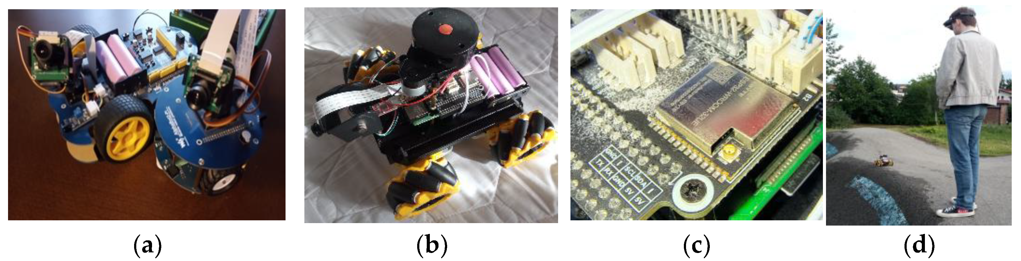 Figure 20b) enables the dynamic testing of movement direction changes, which is why it was selected for further testing. The robot was built based on an intelligent chassis of the Robot Chassis series from Waveshare, Shenzhen, China (