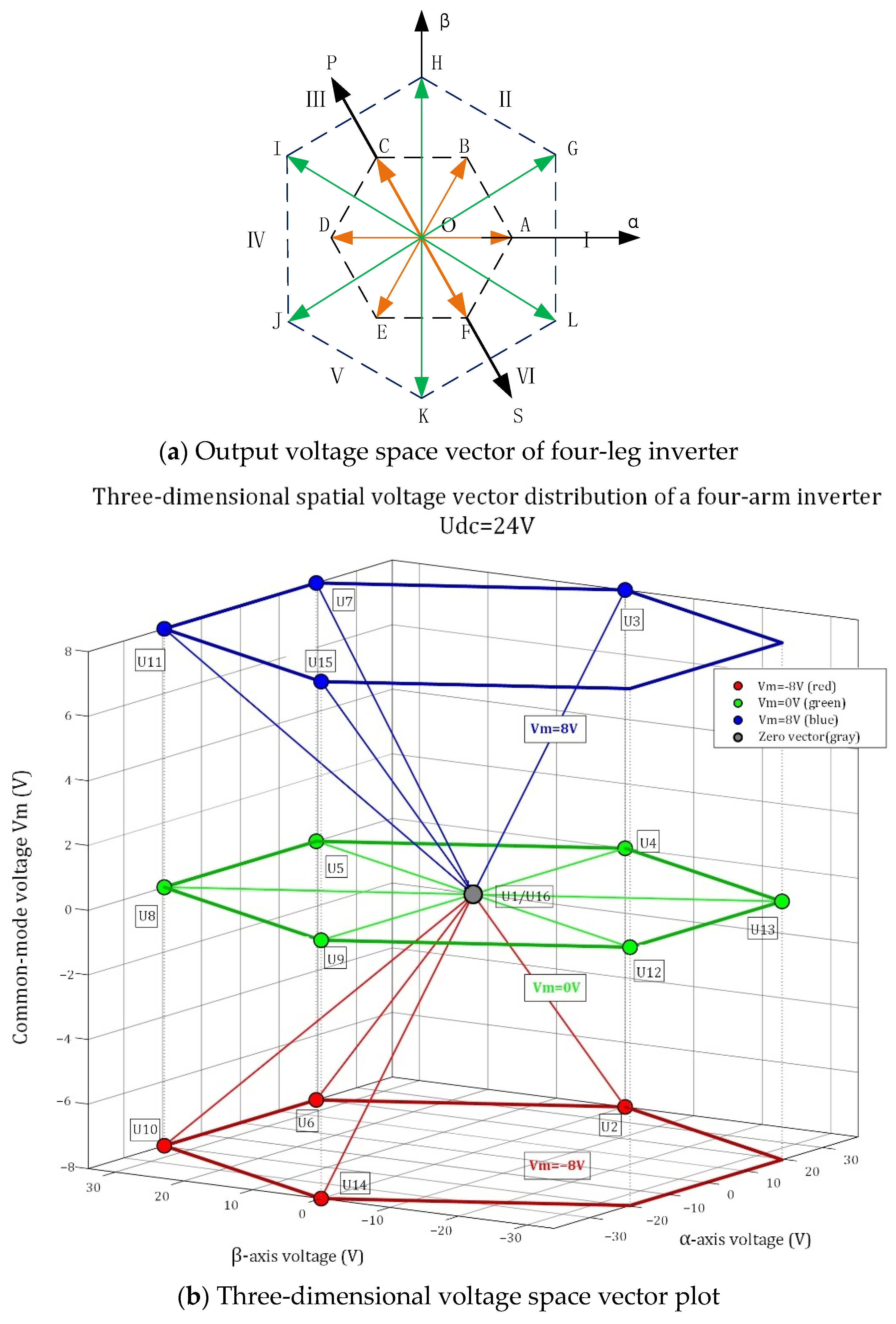 2.2. Four-Leg Inverter Voltage Vector Analysis