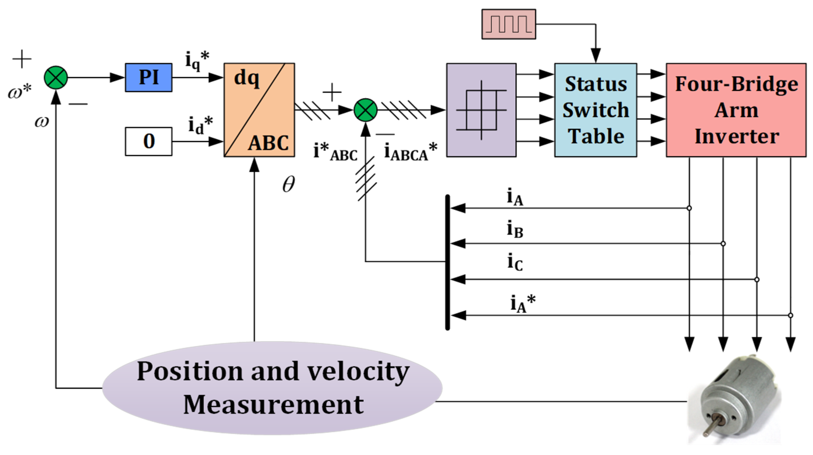 3.1. Open-Winding PMSM Control System Based on Improved Hysteresis Current Control for Four-Leg Inverter