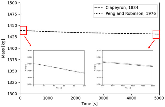 To analyze the thermo-fluid behavior inside the LCO2 storage tank, both the ideal gas law and the Peng–Robinson equation of state (PR-EOS) were considered. The ideal gas law is the most classical form of an EOS and accurately describes the behavior of real gases under low-pressure and high-temperature conditions. It is expressed as follows: