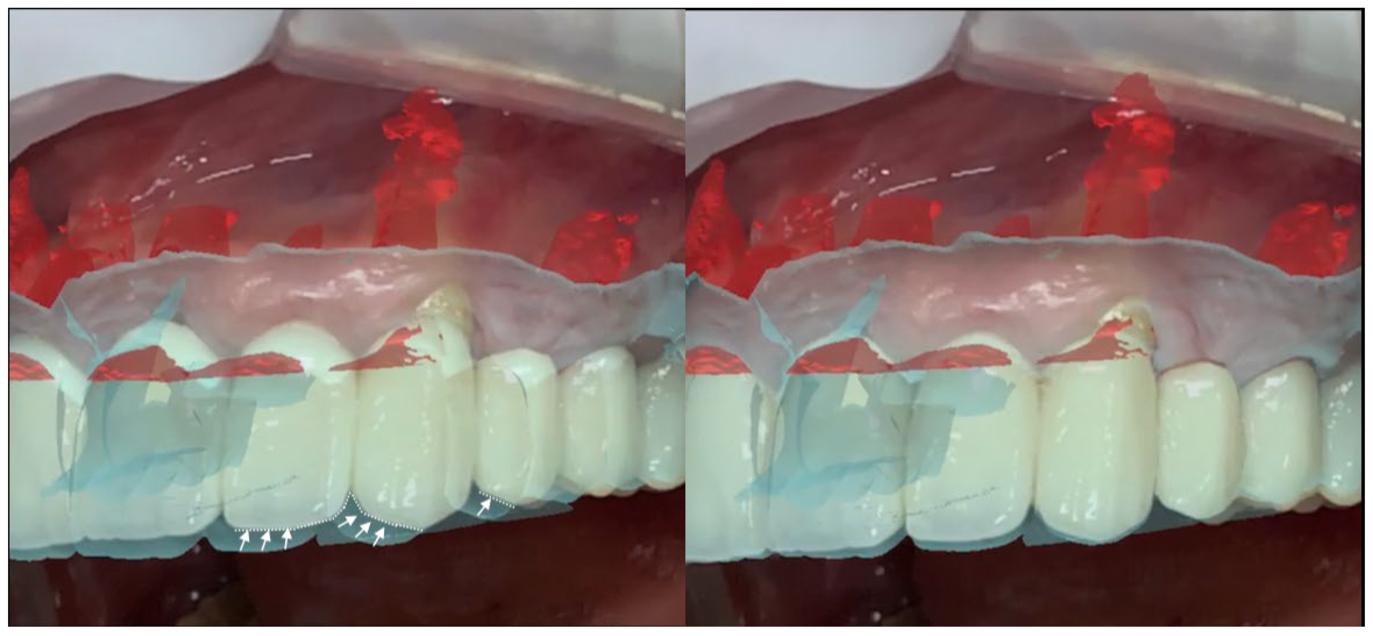 Operative time: The total procedure time was measured from initial flap elevation to suture placement. AR overlap time: The duration required to calibrate and lock the 3D model onto the patient’s anatomy.