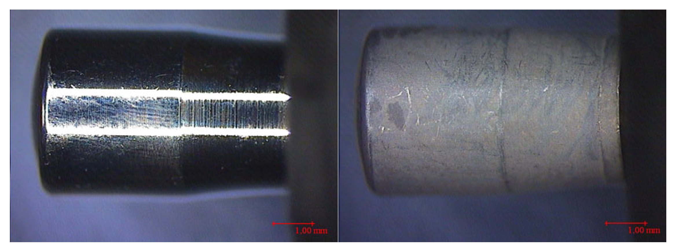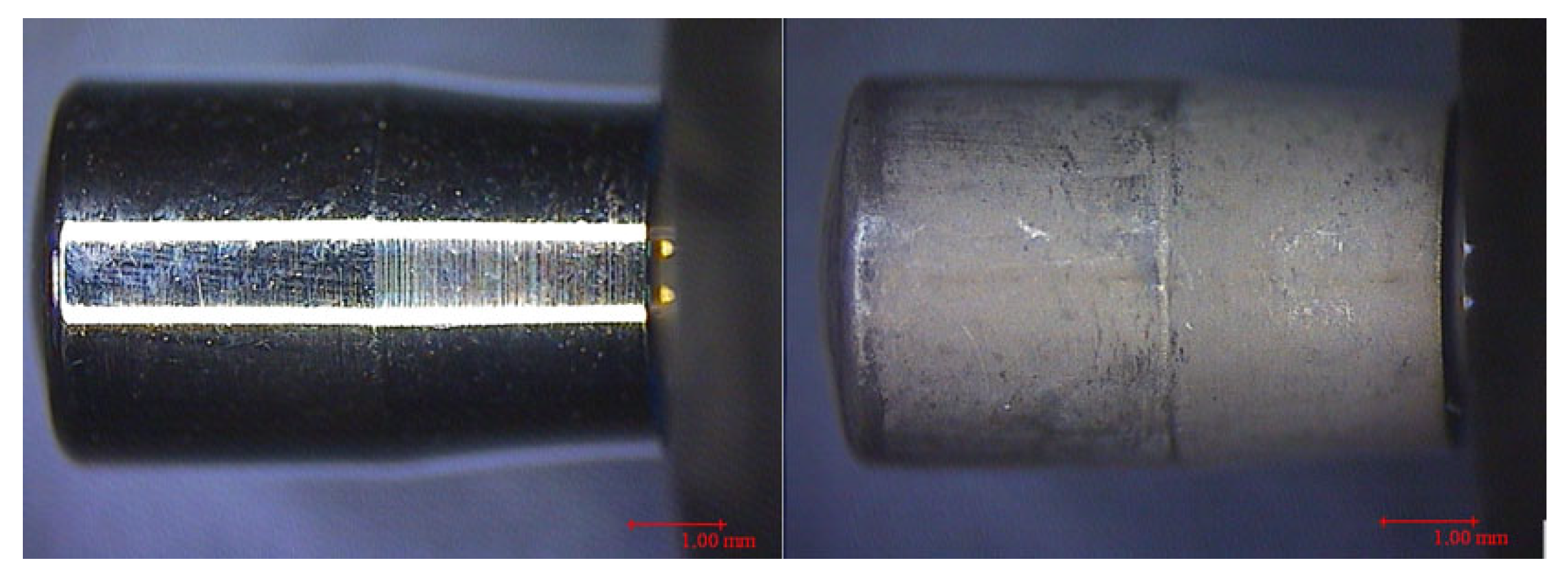 Figure 9. Machined (left) and etched (right) Has instrumented with Satelec perioSoft.