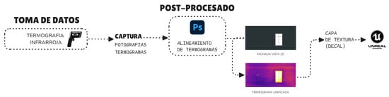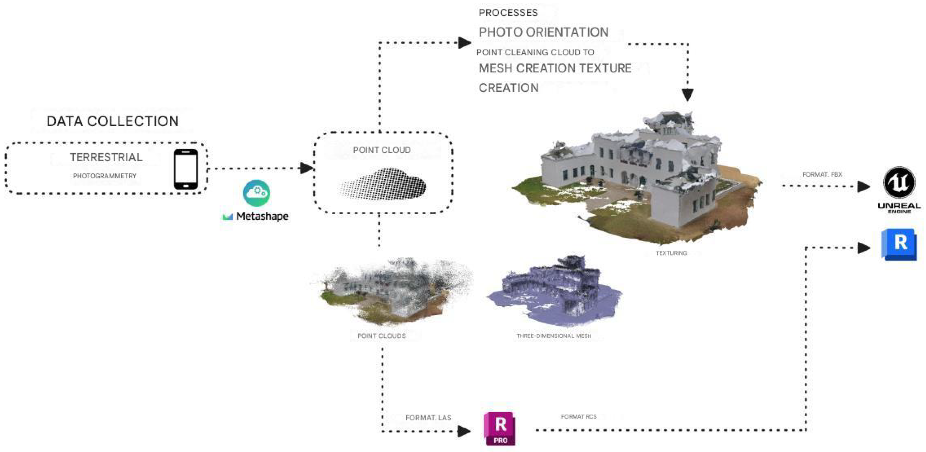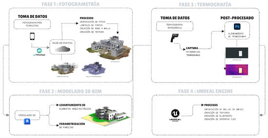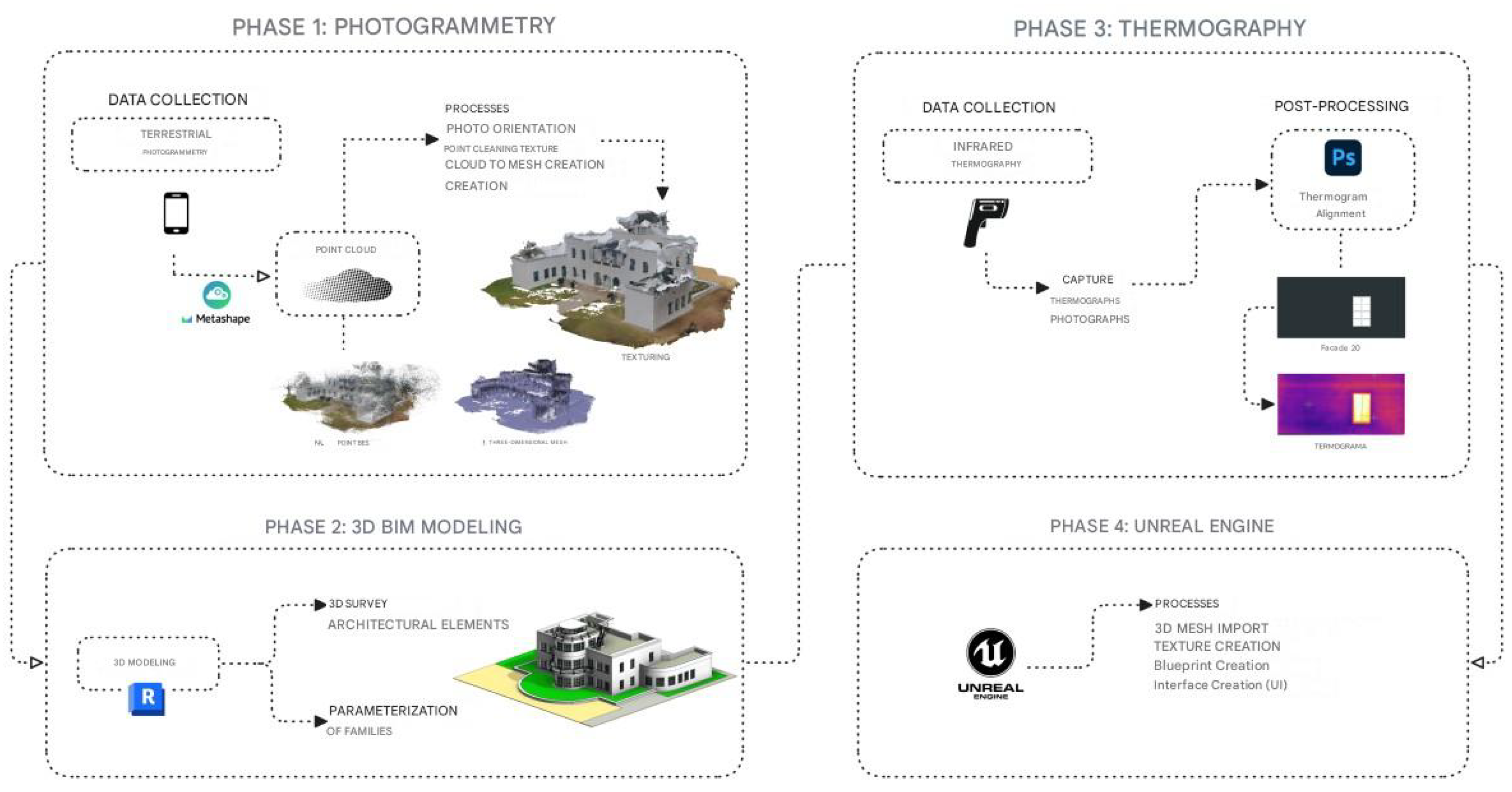 The integration of digital technologies to represent and analyse the built environment has given rise to new methodologies in architecture. However, in many cases, their practical application remains fragmented and undervalued. Hence the need to establish structured, accessible and replicable workflows that articulate processes such as photogrammetry, 3D modelling, thermography and interactive visualisation in a unified environment.