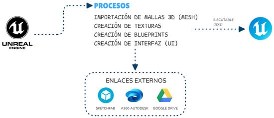 - Bürger, N.; Palleis, H.; Höhl, W. Realtime Interactive Architectural Visualization Using Unreal Engine 3.5. Master’s Thesis, Ludwig Maximilian University of Munich, Munich, Germany, 2014. [Google Scholar] [CrossRef]