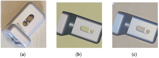 For this experiment, a dataset comprising 100 real camera-captured images of a bracket (Figure 7a) and 100 rendered images (Figure 7c) was used to train a MobileNetV2 classification model. The trained model was first evaluated on a test set consisting of 100 real and 100 rendered images. As shown in Figure 8a, the resulting confusion matrix indicates that the model achieved 100% classification accuracy, perfectly distinguishing between real and rendered images.