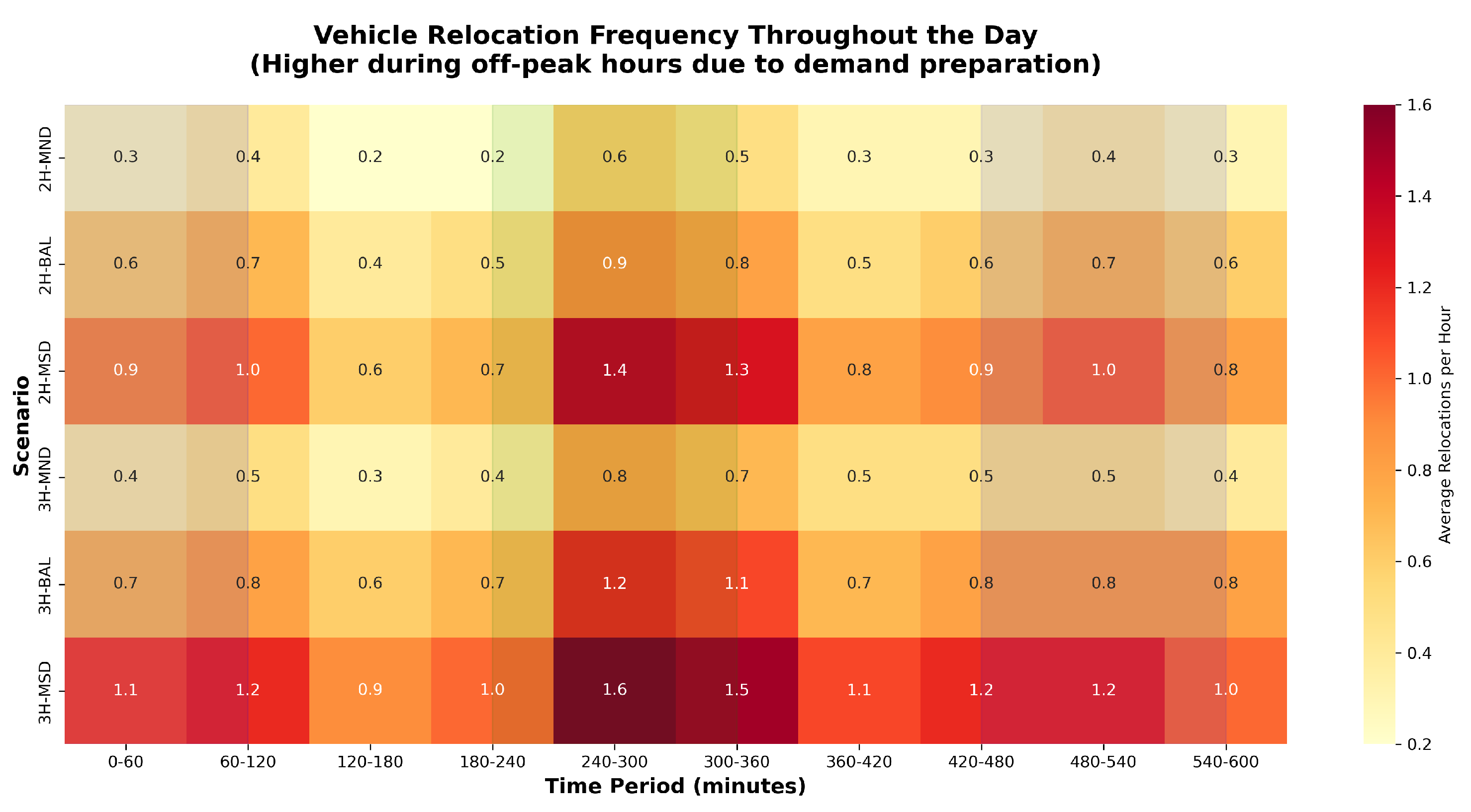- Relocation Time Windows: Vehicle relocations can only occur during idle periods and must be complete before the vehicle’s next anticipated assignment. This ensures that proactive positioning does not interfere with active service commitments.
