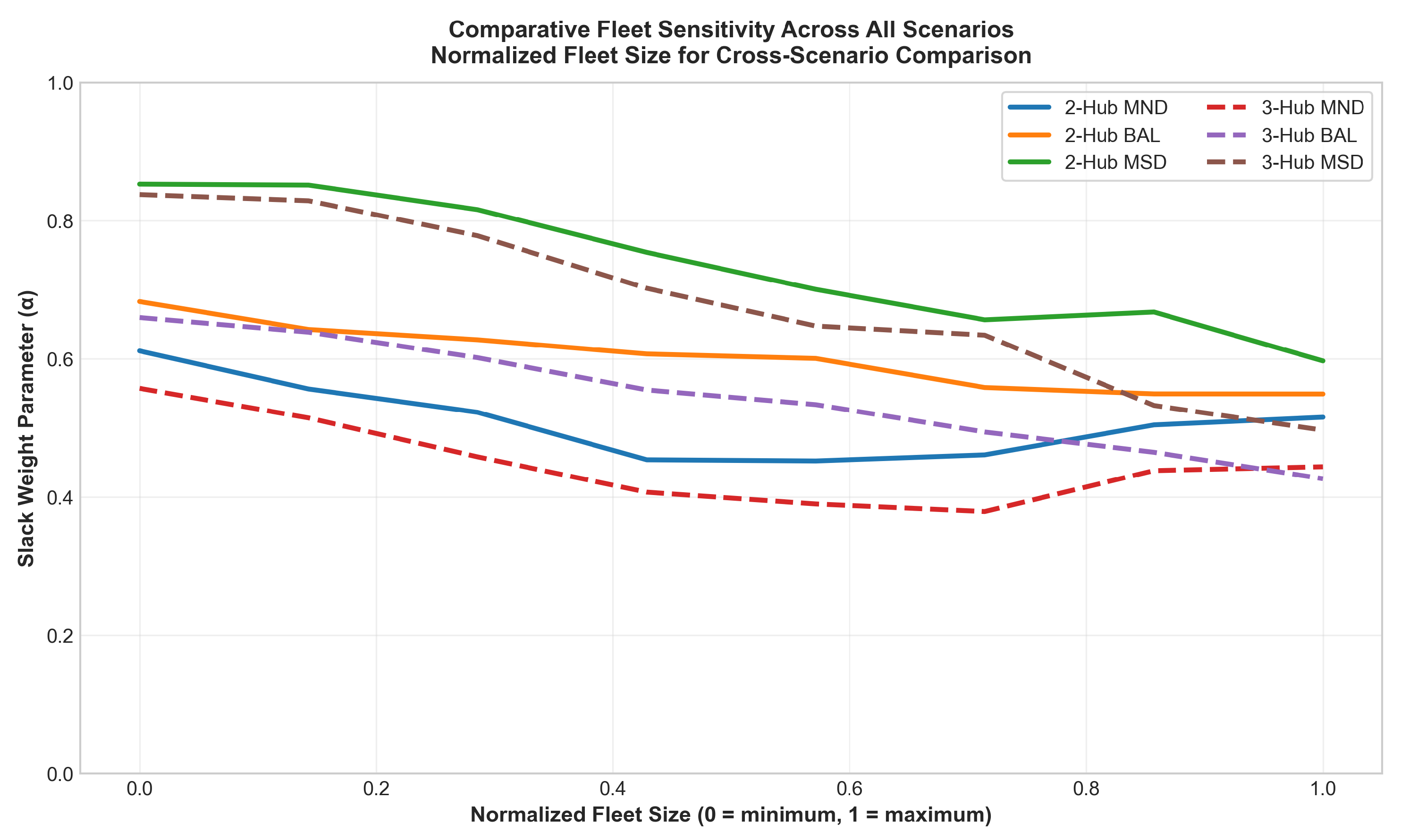 - Deterministic Travel Times: Travel times between locations are known and constant. While this simplification is common in strategic fleet sizing problems and aligns with standard VRP literature, we partially capture real-world traffic variations through time-dependent linehaul capacity adjustments during peak (80% capacity) and off-peak (120% capacity) periods. This approach balances model tractability with operational realism for the core fleet sizing and multi-trip coordination challenges.