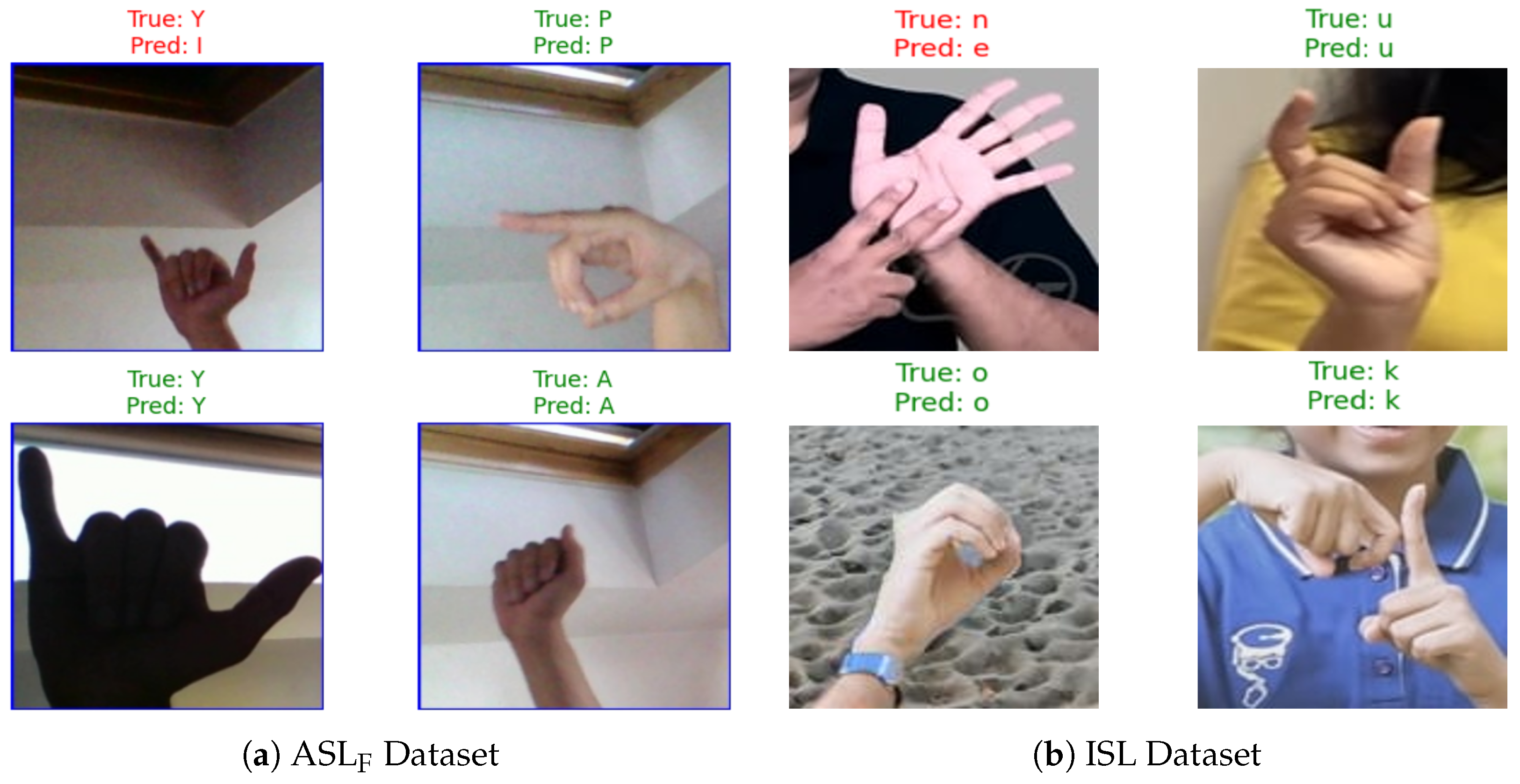 - Tanni, K.F.; Islam, S.; Sultana, Z.; Alam, T.; Mahmood, M. DeepBdSL: A Comprehensive Assessment of Deep Learning Architectures for Multiclass Bengali Sign Language Gesture Recognition. In Proceedings of the 27th International Conference on Computer and Information Technology (ICCIT), Cox’s Bazar, Bangladesh, 20–22 December 2024; IEEE: New York, NY, USA, 2024; pp. 2219–2224. [Google Scholar]