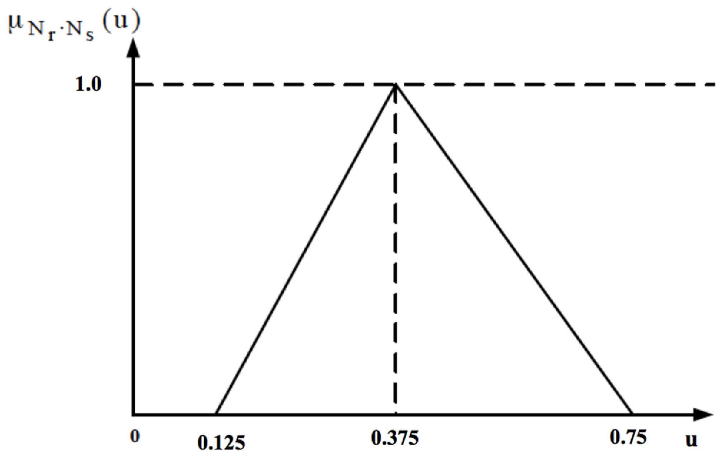 Next, the linguistic variables of the risk s and r are replaced by the respective fuzzy triangular numbers Ns and Nr.
