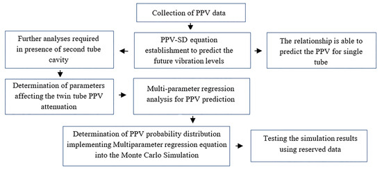 Flowchart illustrating the sequential, decision-driven research methodology for PPV analysis in twin tunnels, from data collection to probabilistic validation.