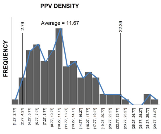 Frequency distribution of validation PPV measurements from left tunnel.
