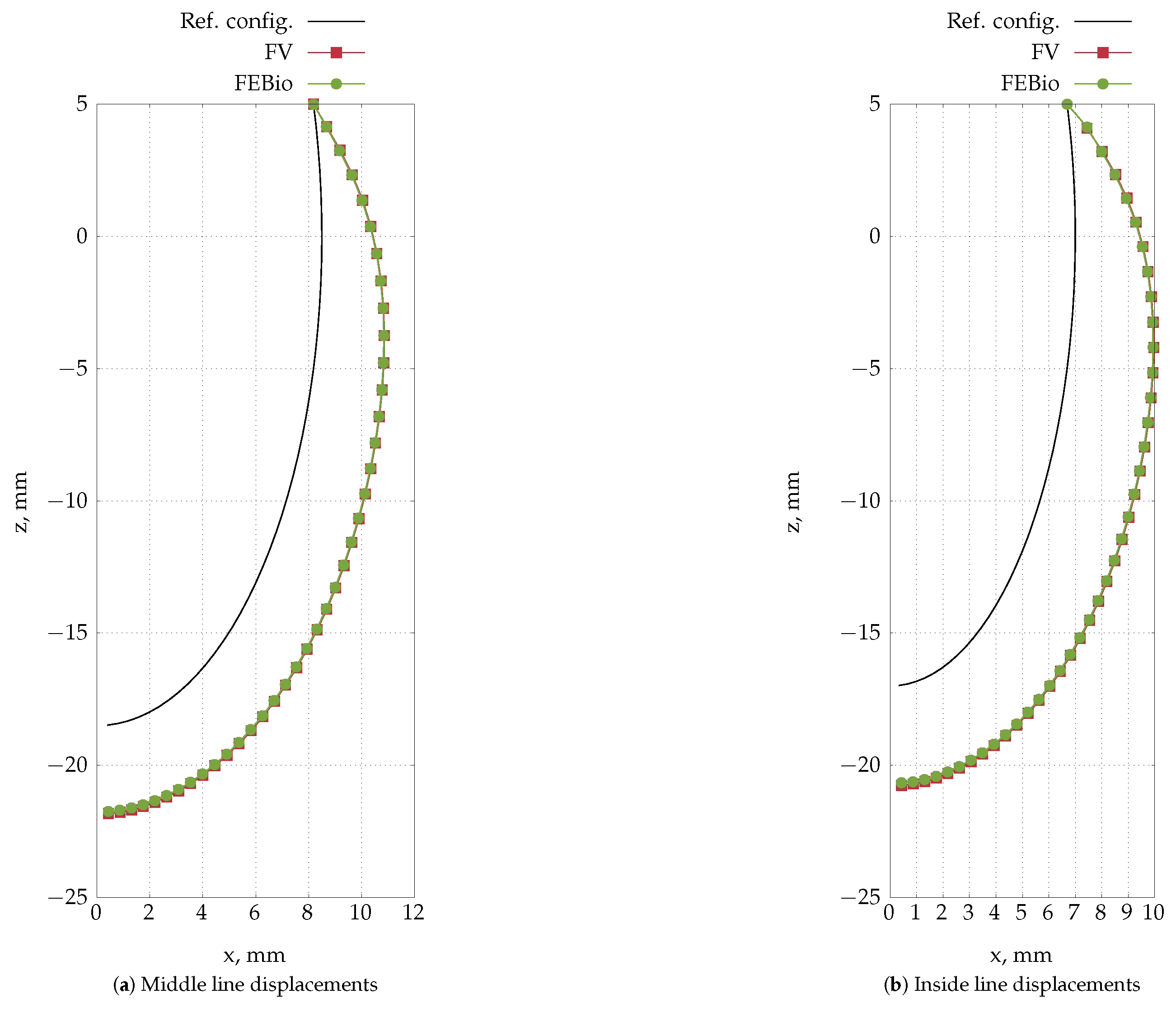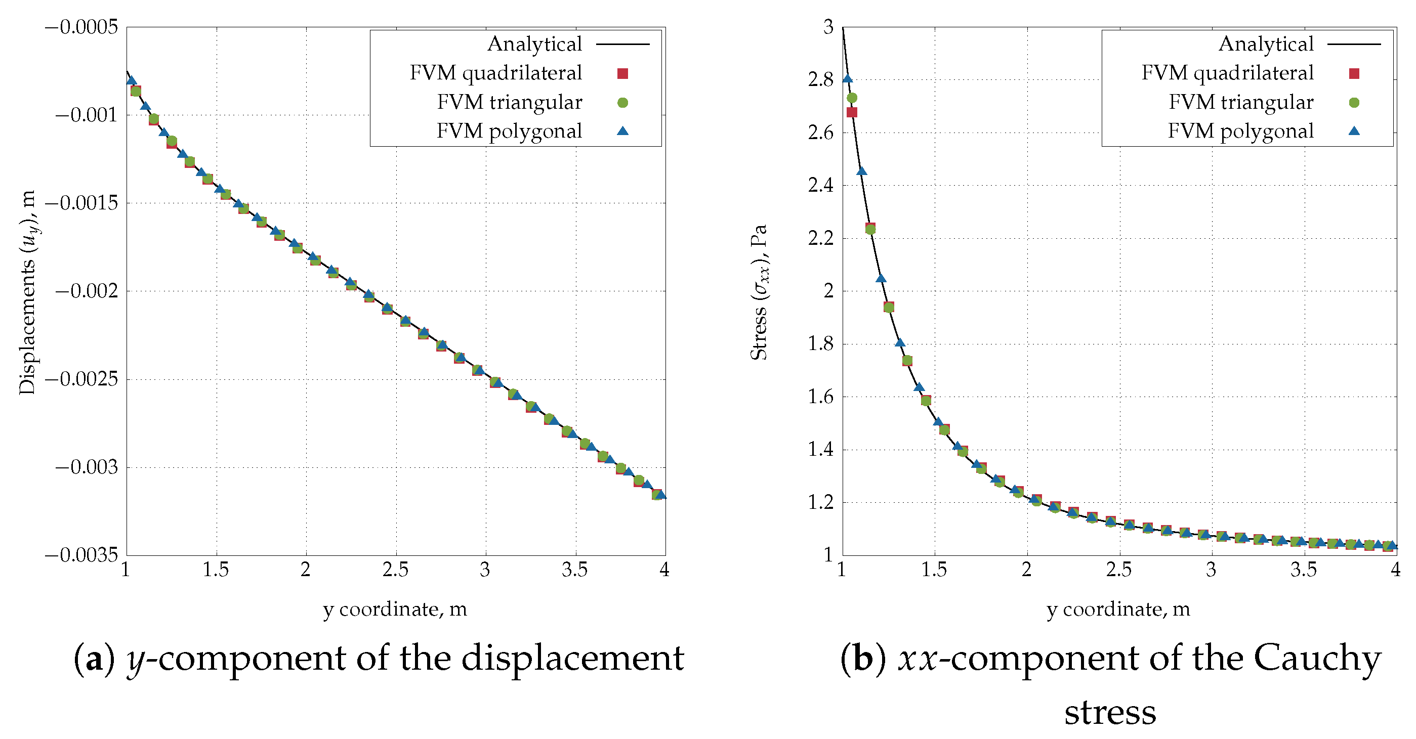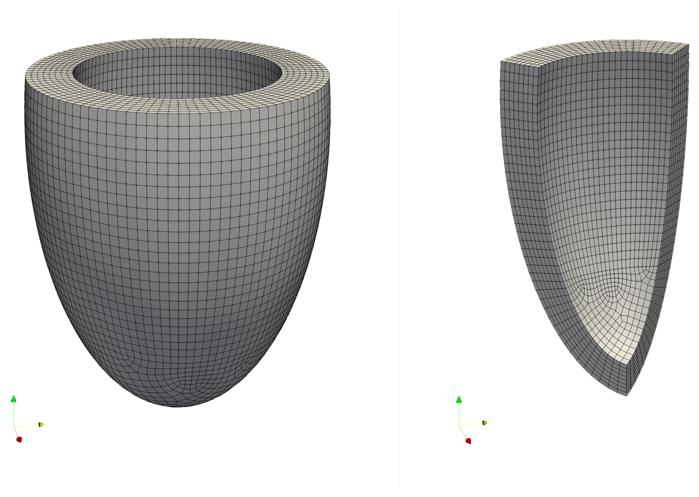 - Extended material applicability: The proposed FV solver is applicable to both linear elastic bodies and nonlinear hyperelastic materials described by arbitrary constitutive equations, with emphasis on constitutive relations used for modelling arterial walls and heart tissue (for example, Holzapfel-Gasser-Ogden (HGO) model [15] and Guccione model [16]).