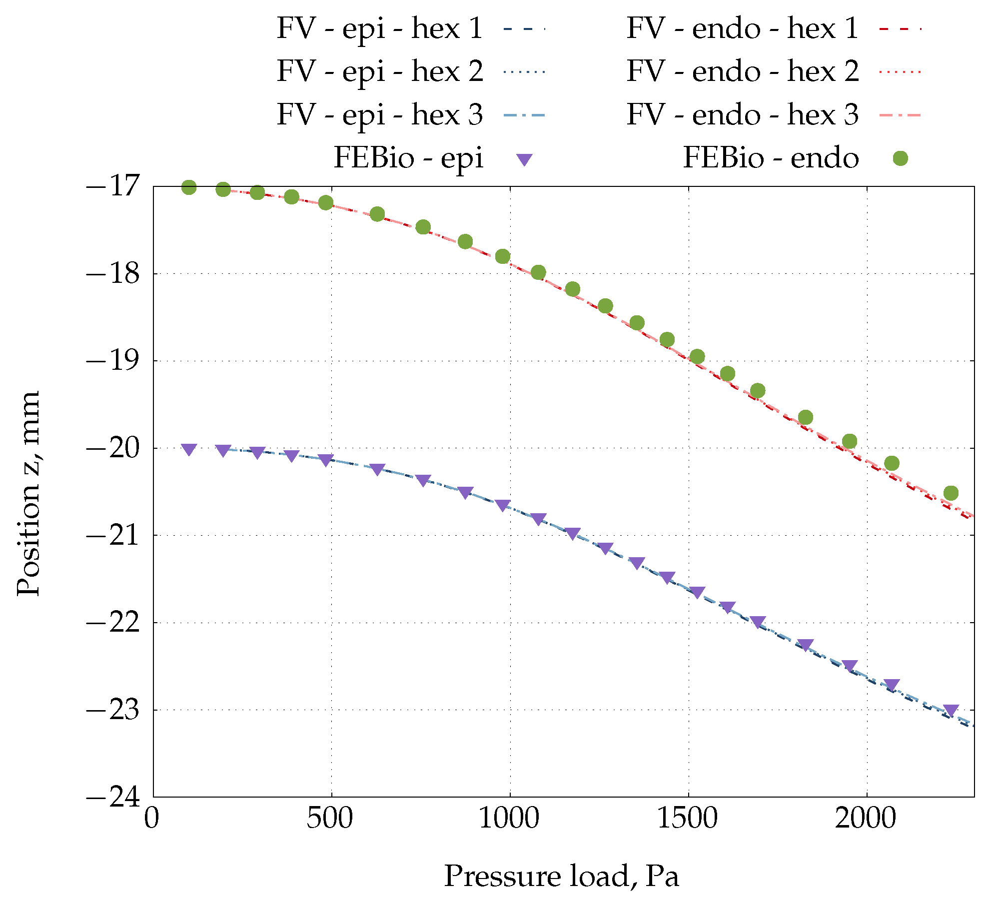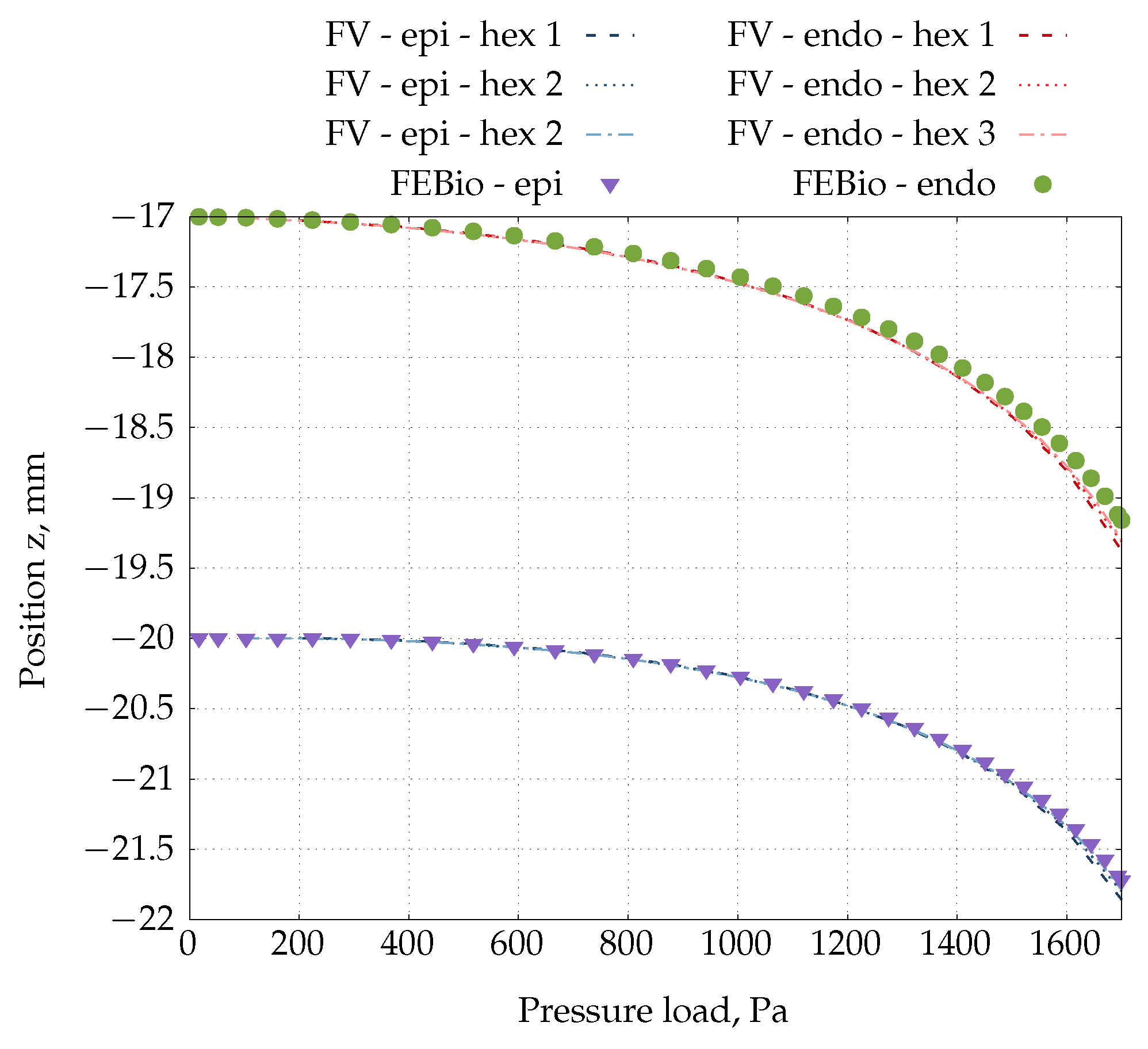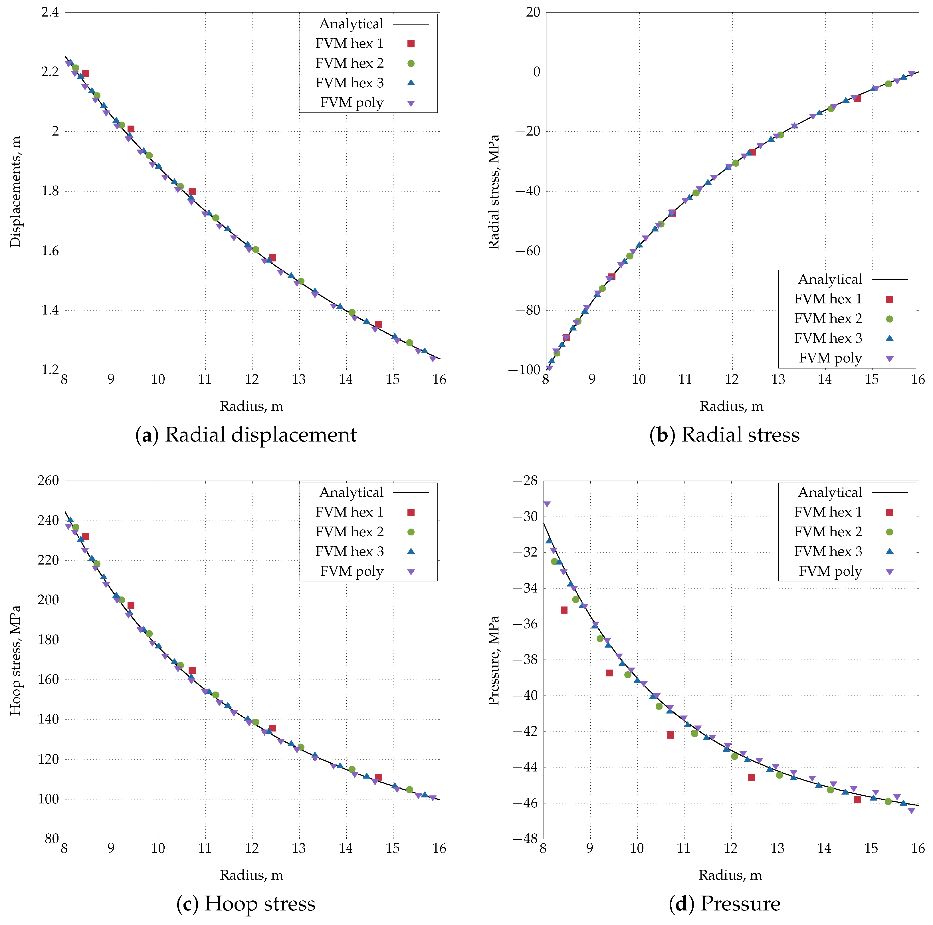 - Extended material applicability: The proposed FV solver is applicable to both linear elastic bodies and nonlinear hyperelastic materials described by arbitrary constitutive equations, with emphasis on constitutive relations used for modelling arterial walls and heart tissue (for example, Holzapfel-Gasser-Ogden (HGO) model [15] and Guccione model [16]).
