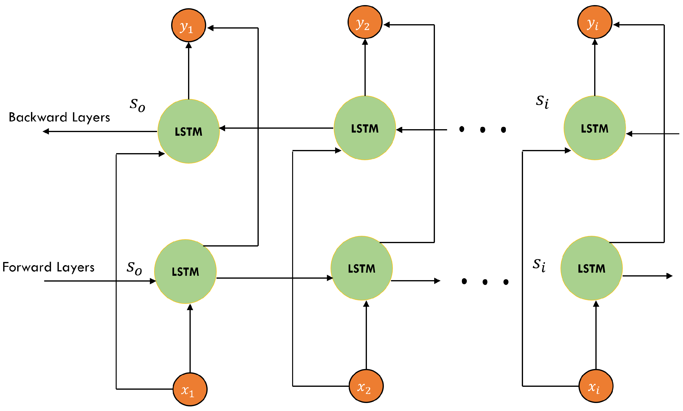 In our model, the first Bi-LSTM layer returns the full sequence, which is then passed to the second Bi-LSTM layer that outputs the final hidden state only. The Bi-LSTM processes the sequence along the original time dimension, using the temporally refined feature map output by the retentive module as input, hence capturing order-sensitive dependencies by maintaining memory across the entire sequence in both forward and backward directions. This bidirectional structure enables the model to leverage past and future context simultaneously and model long-range temporal structures. The structure of the Bi-LSTM is shown in