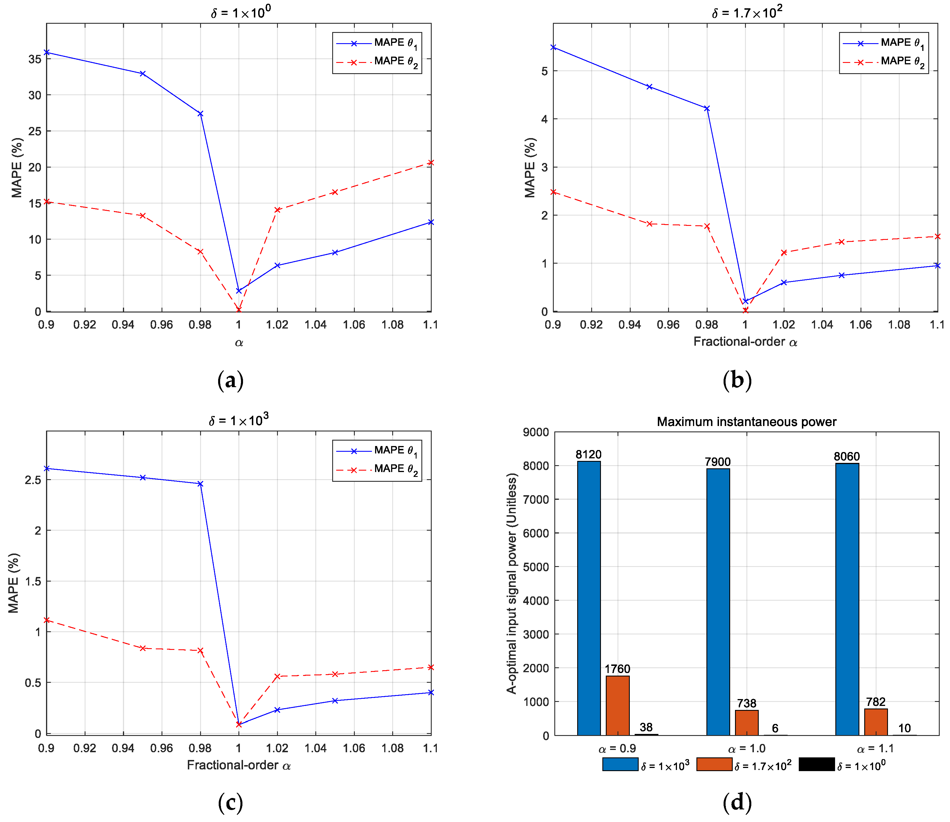 5.1. Integer-Order System Identification for α = 1.0