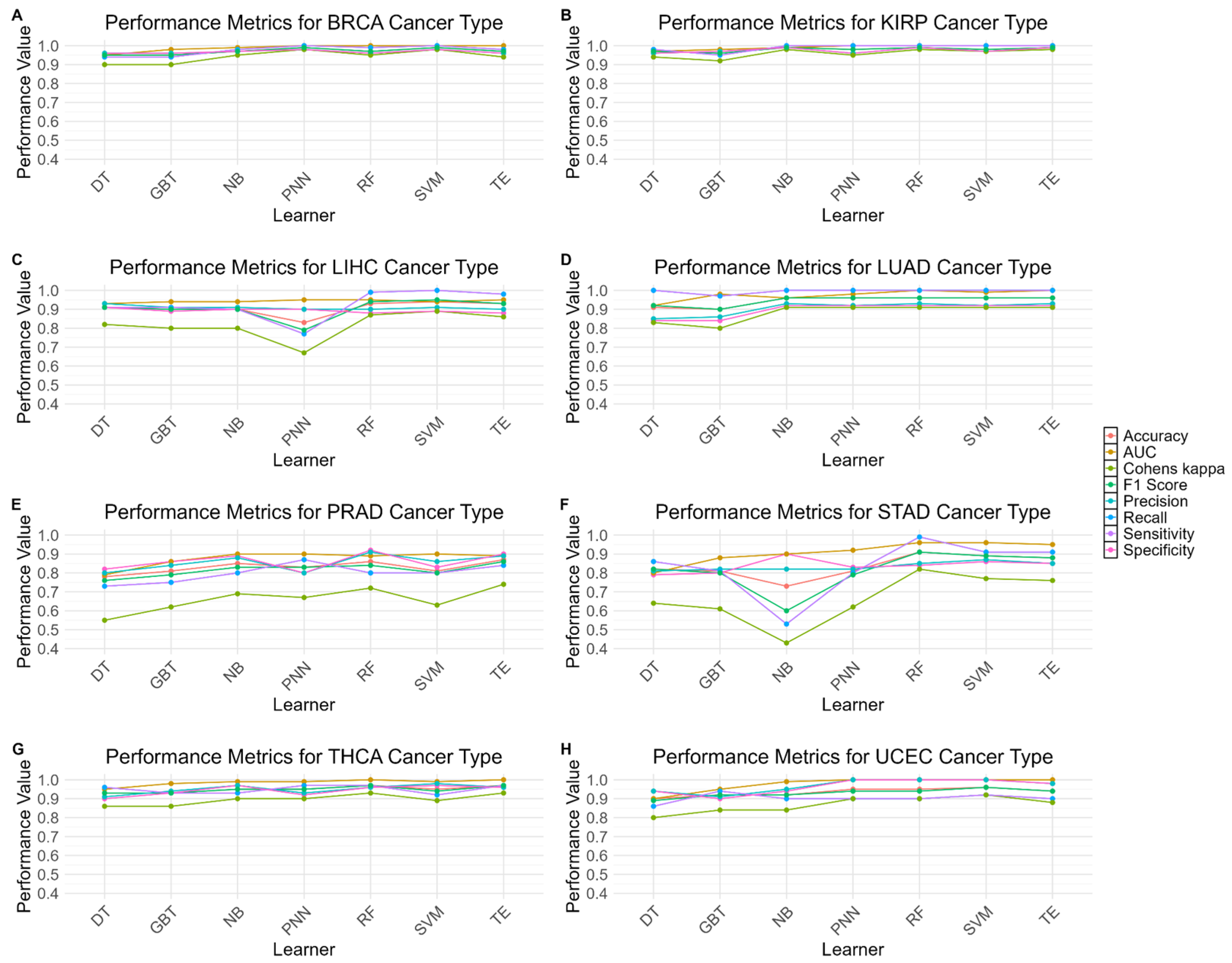 - Albaradei, S.; Thafar, M.; Alsaedi, A.; Van Neste, C.; Gojobori, T.; Essack, M.; Gao, X. Machine learning and deep learning methods that use omics data for metastasis prediction. Comput. Struct. Biotechnol. J. 2021, 19, 5008–5018. [Google Scholar] [CrossRef]