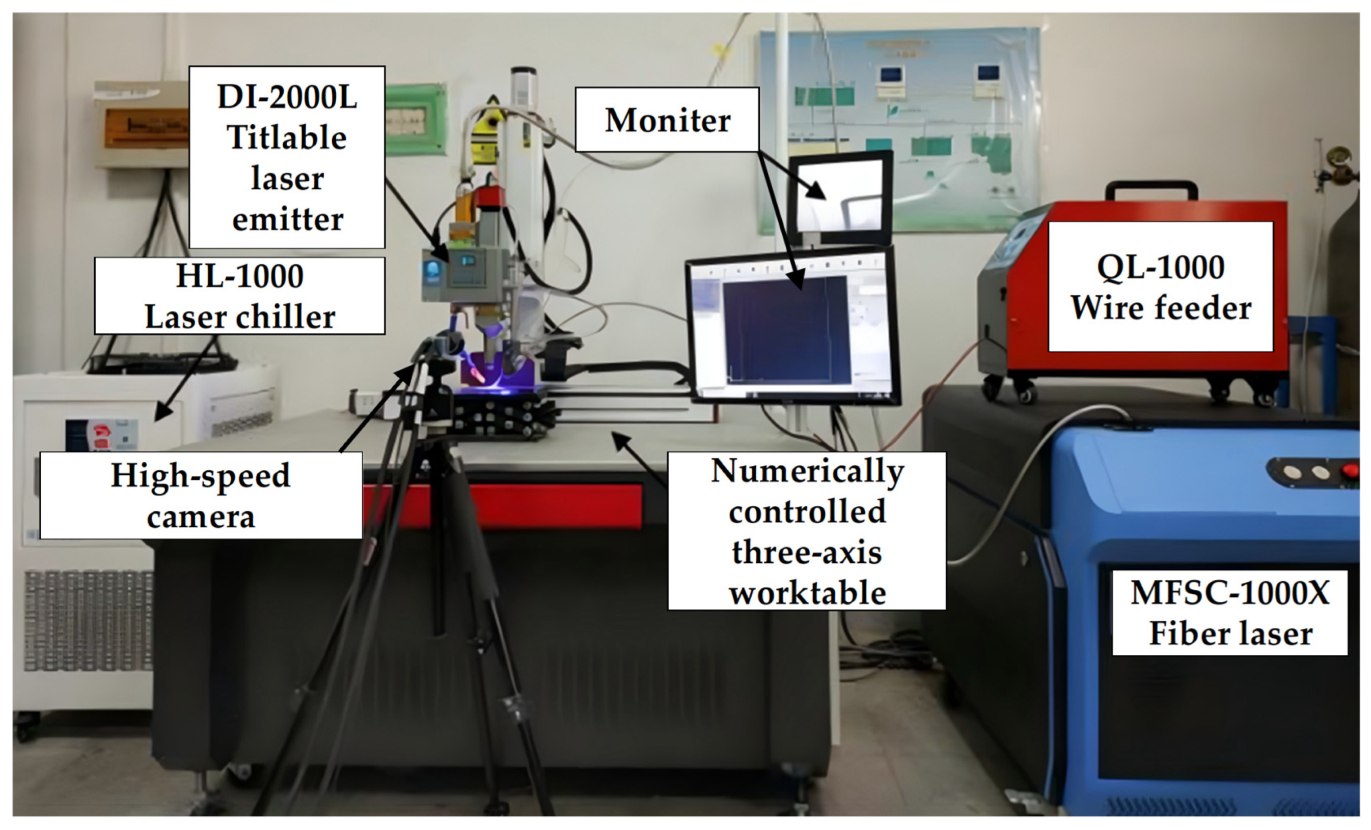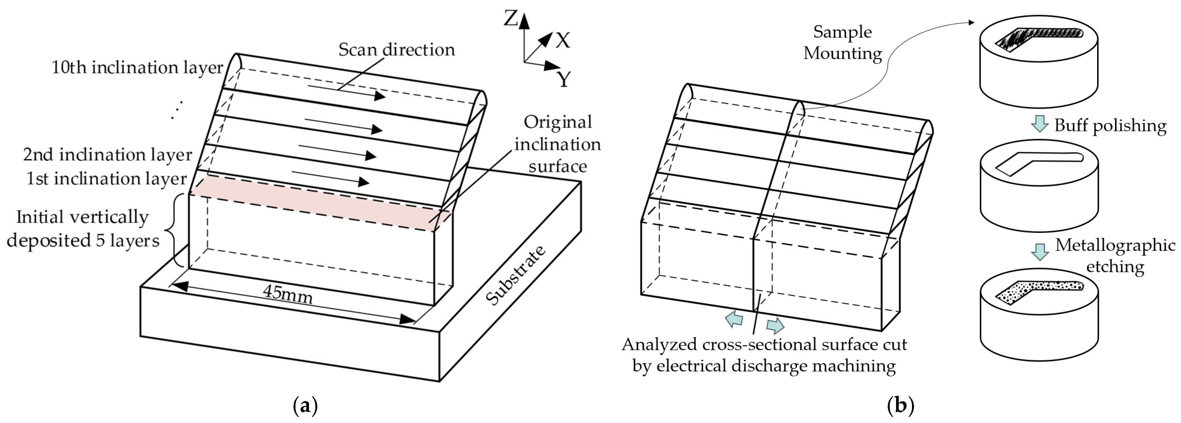 - Li, Y.; Park, S.Y.; Choi, H. Effects of Substrate Inclination on Molten Pool Geometry in Laser Metal Deposition Using 304 Stainless Steel. J. Laser Appl. 2025, 37, 012009. [Google Scholar]